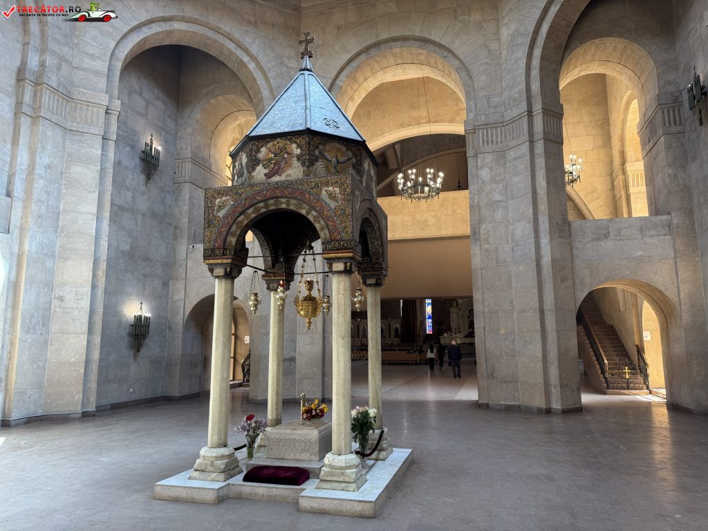 Dincolo de date, dimensiuni și ceremonii, rămâne impresia pe care locul o lasă în contact direct. Fațadele severe, arcadele adânci, cupolele cu muchii ferme și scările largi creează un parcurs care pregătește treptat intrarea. Nimic nu pare accidental. Totul sugerează rigoare, stabilitate și memorie lungă. Într-un oraș unde straturile istorice se văd adesea fragmentar, Catedrala Sfântul Grigore Luminătorul funcționează ca o sinteză vizibilă: Armenia veche, Armenia modernă și Armenia credinței se întâlnesc aici într-o formă clară, monumentală și ușor de recunoscut.