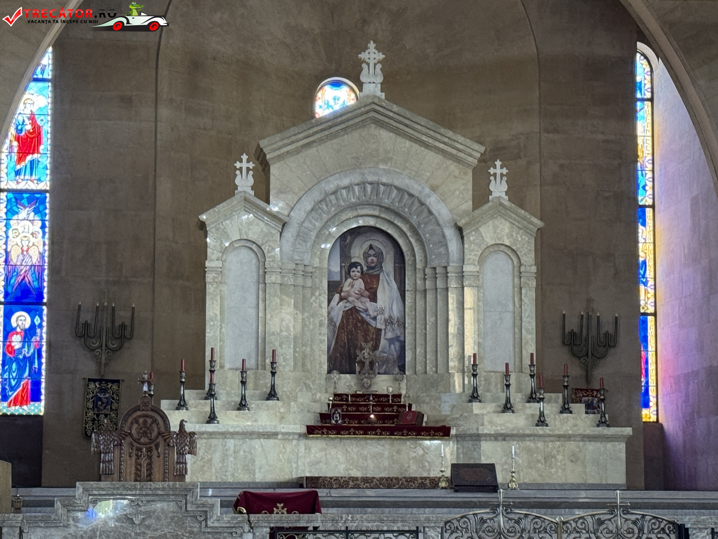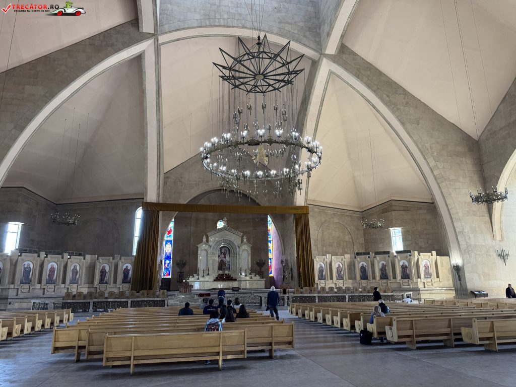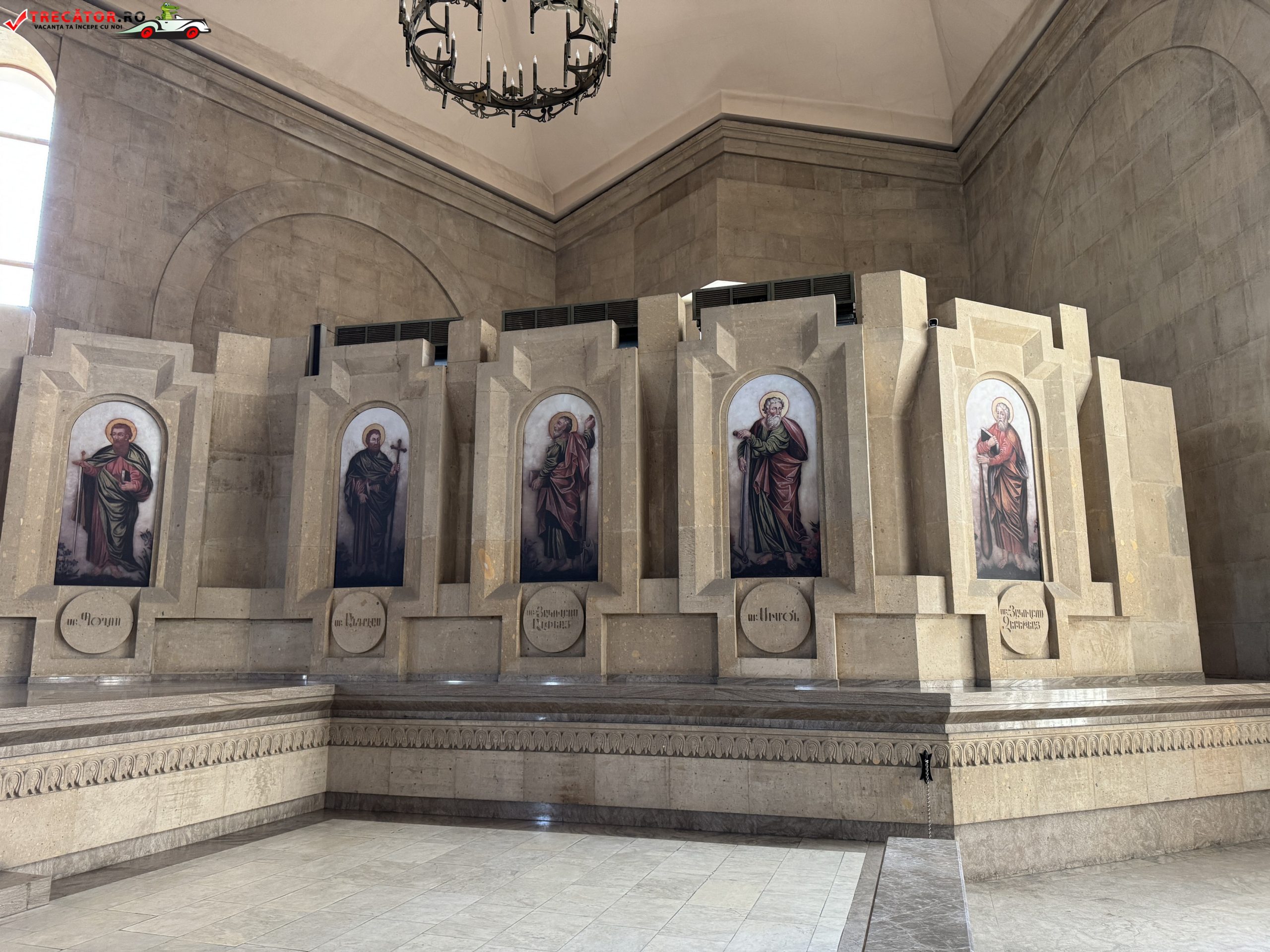 Interiorul continuă aceeași logică a monumentalității controlate. Nu domină prin exces decorativ, ci prin volum, lumină și proporție. Spațiul este gândit pentru ceremonii ample, iar biserica principală are 1700 de locuri, număr ales în mod evident în acord cu aniversarea celor 1700 de ani de creștinism armean. Din această cauză, impresia generală nu este aceea a unei biserici intime, ascunse în țesutul vechi al orașului, ci a unei catedrale construite pentru adunări mari, sărbători naționale și evenimente religioase de rang înalt.
