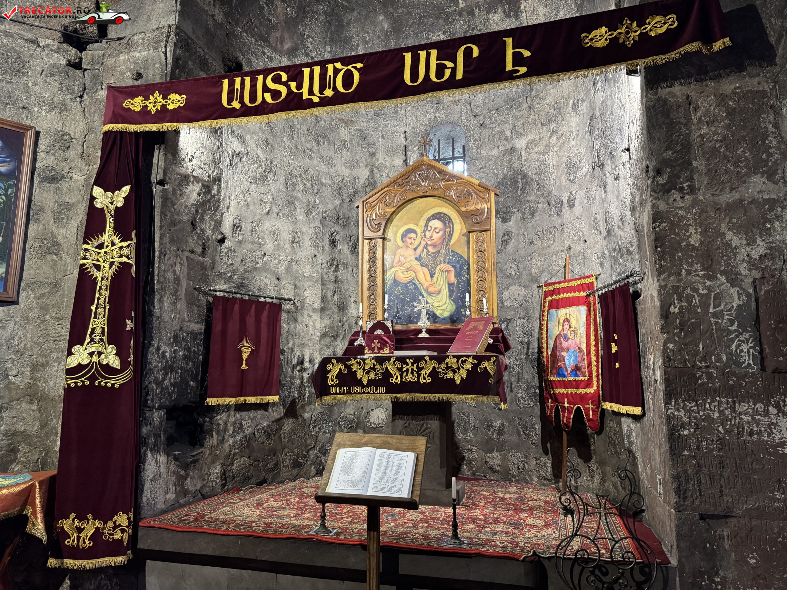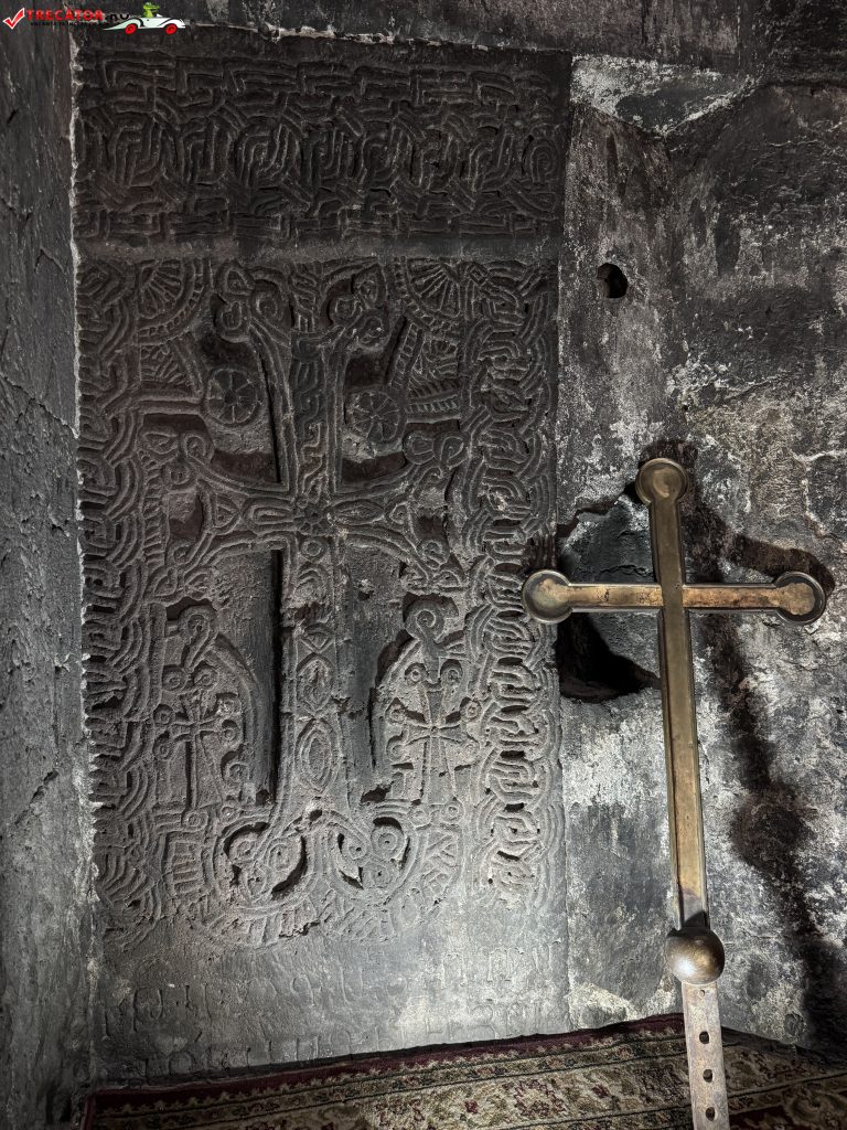 În jurul bisericii, khachkarurile completează povestea locului. Aceste cruci de piatră sculptate, prezente și la Hayravank, au în Armenia rol de monumente memoriale, repere de cult și semne de legătură între spațiul lumesc și cel sacru. UNESCO descrie khachkarurile ca stele de piatră cu o cruce centrală bogat ornamentată, însoțită de motive vegetale și geometrice, iar meșteșugul realizării lor figurează din 2010 pe Lista Reprezentativă a Patrimoniului Cultural Imaterial al Umanității. În apropierea zidurilor de la Hayravank, aceste pietre nu apar ca simple obiecte decorative, ci ca o prelungire firească a arhitecturii și a ritualului.