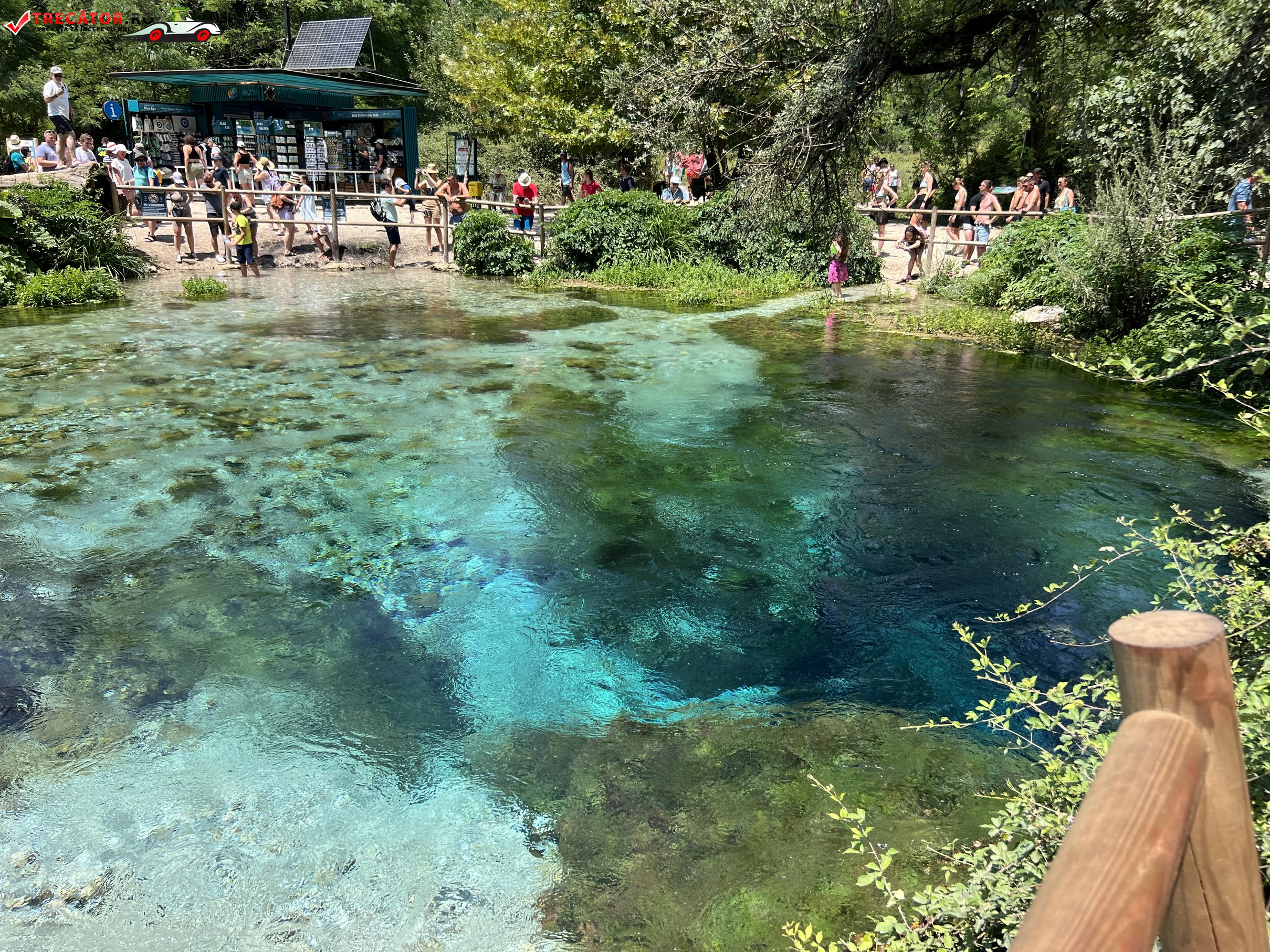Zona din jurul The Blue Eye este ideală pentru drumeții ușoare, oferind trasee prin pădure și puncte de belvedere asupra peisajului montan și a izvorului.