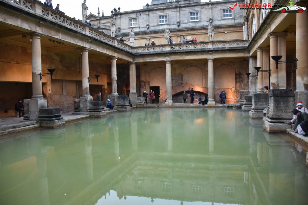 Băile Romane din Bath impresionează prin arhitectura lor bine conservată. Marele Bazin (Great Bath) este o piscină dreptunghiulară înconjurată de o colonadă, unde romanii se întâlneau pentru a socializa și a se relaxa. Pereții și podelele erau încălzite printr-un sistem ingenios de hipocaust, demonstrând avansul tehnologic al vremii. ​