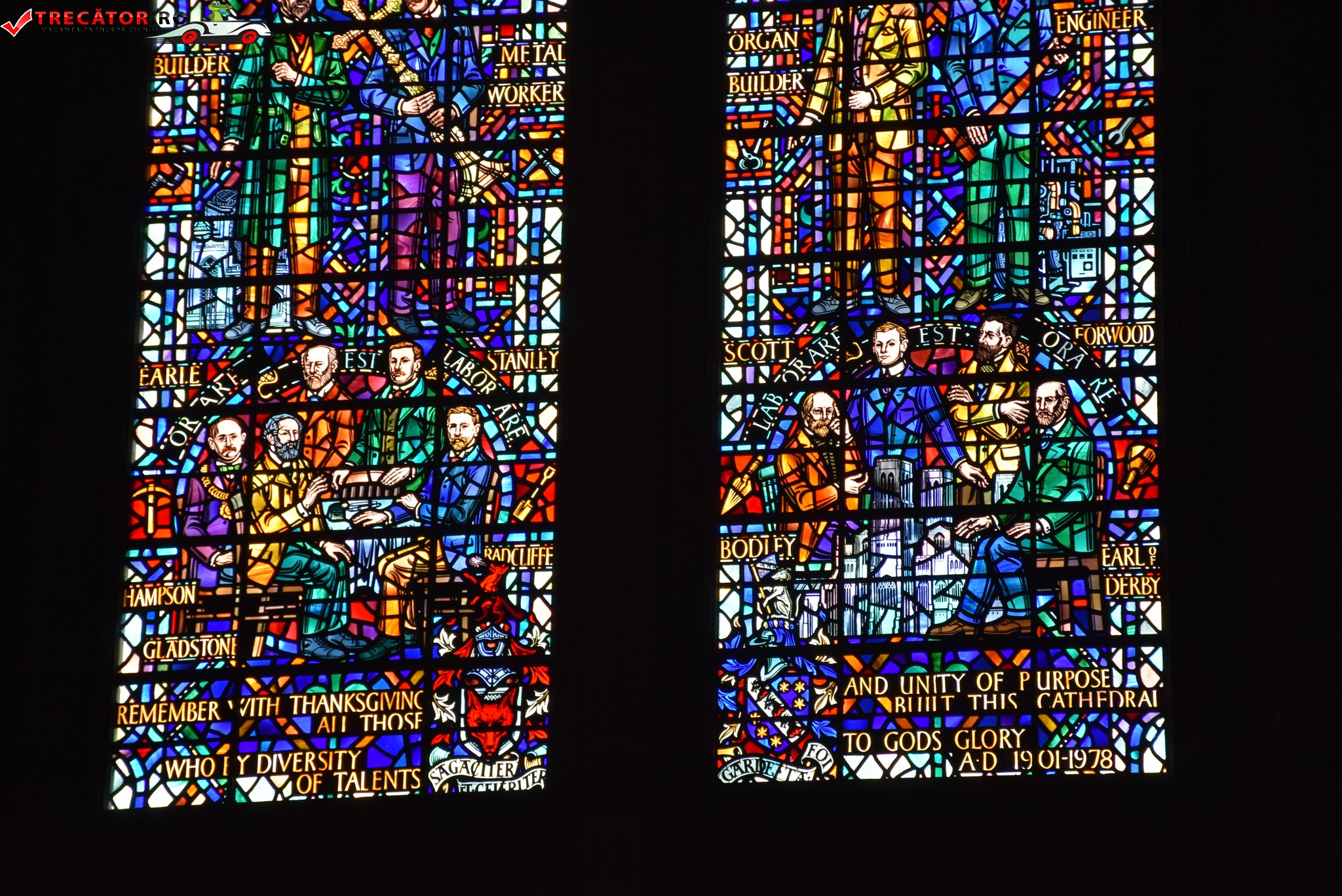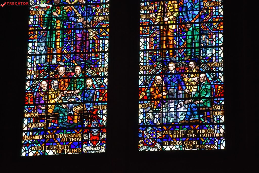 Majoritatea vitraliilor au fost realizate de firma James Powell and Sons, cu designuri semnate de artiști precum John William Brown și James Humphries Hogan. Acestea acoperă o suprafață totală de aproximativ 1.700 de metri pătrați și contribuie la atmosfera solemnă și spirituală a catedralei.