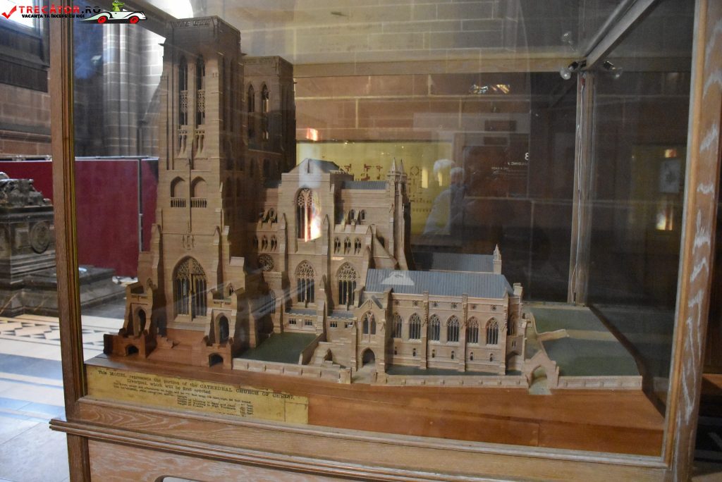 Construită în principal din gresie roșie locală, catedrala impresionează prin bolțile sale înalte și detaliile arhitecturale elaborate. Turnul său masiv adăpostește un set de 13 clopote, cunoscute sub numele de Clopotele Bartlett, și un clopot mare numit „Great George”, care cântărește 14,5 tone, fiind al treilea ca mărime din Marea Britanie.