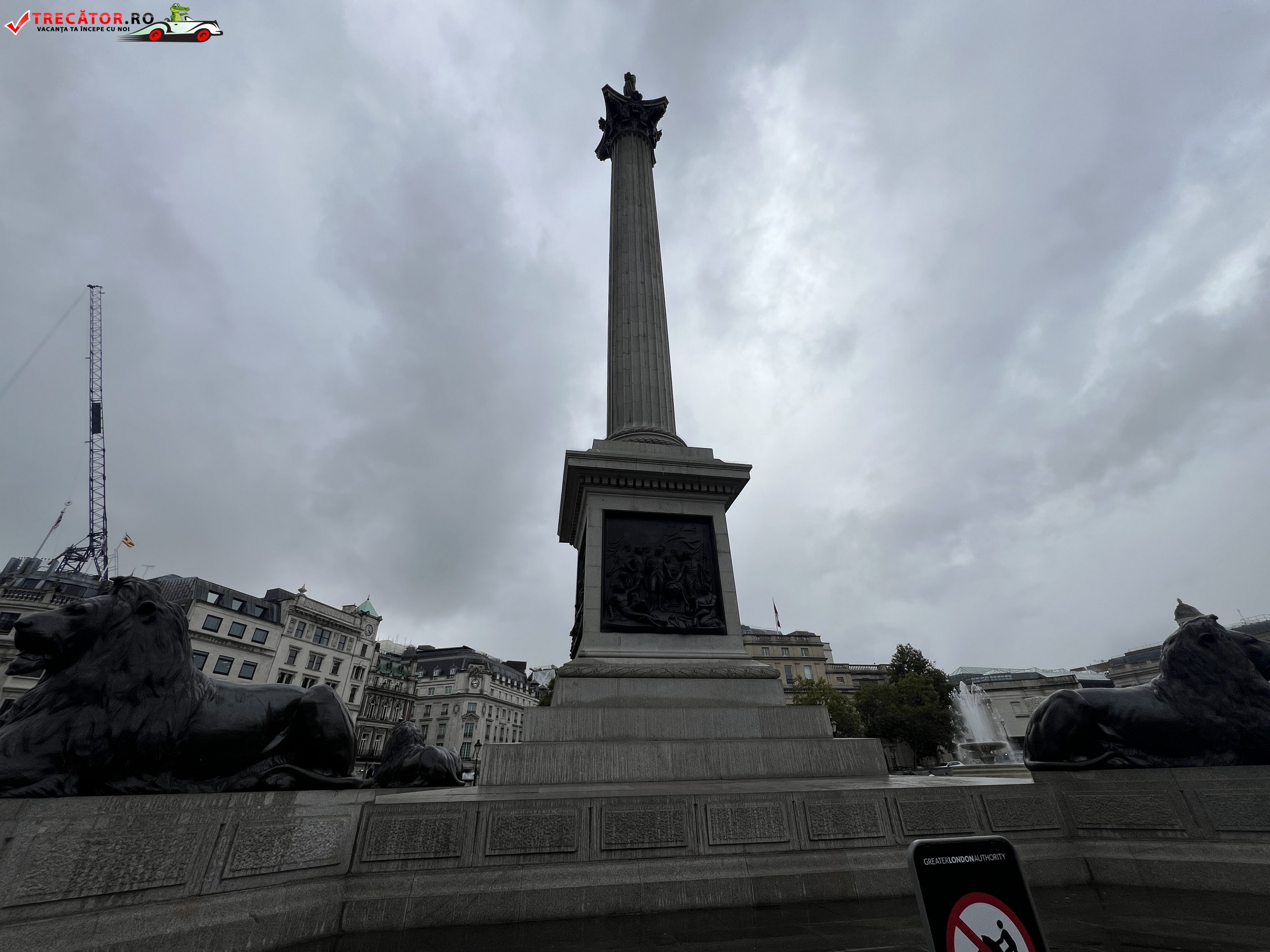 Piața Trafalgar (Trafalgar Square) este una dintre cele mai emblematice locații din Londra, situată în inima orașului. Piața a fost creată la începutul secolului al XIX-lea pentru a comemora Bătălia de la Trafalgar din 1805, o victorie navală decisivă a Marii Britanii împotriva flotelor franceze și spaniole în timpul războaielor napoleoniene. În centrul pieței se află Coloana lui Nelson, o statuie impunătoare a amiralului Lord Nelson, care a condus flota britanică în acea bătălie.