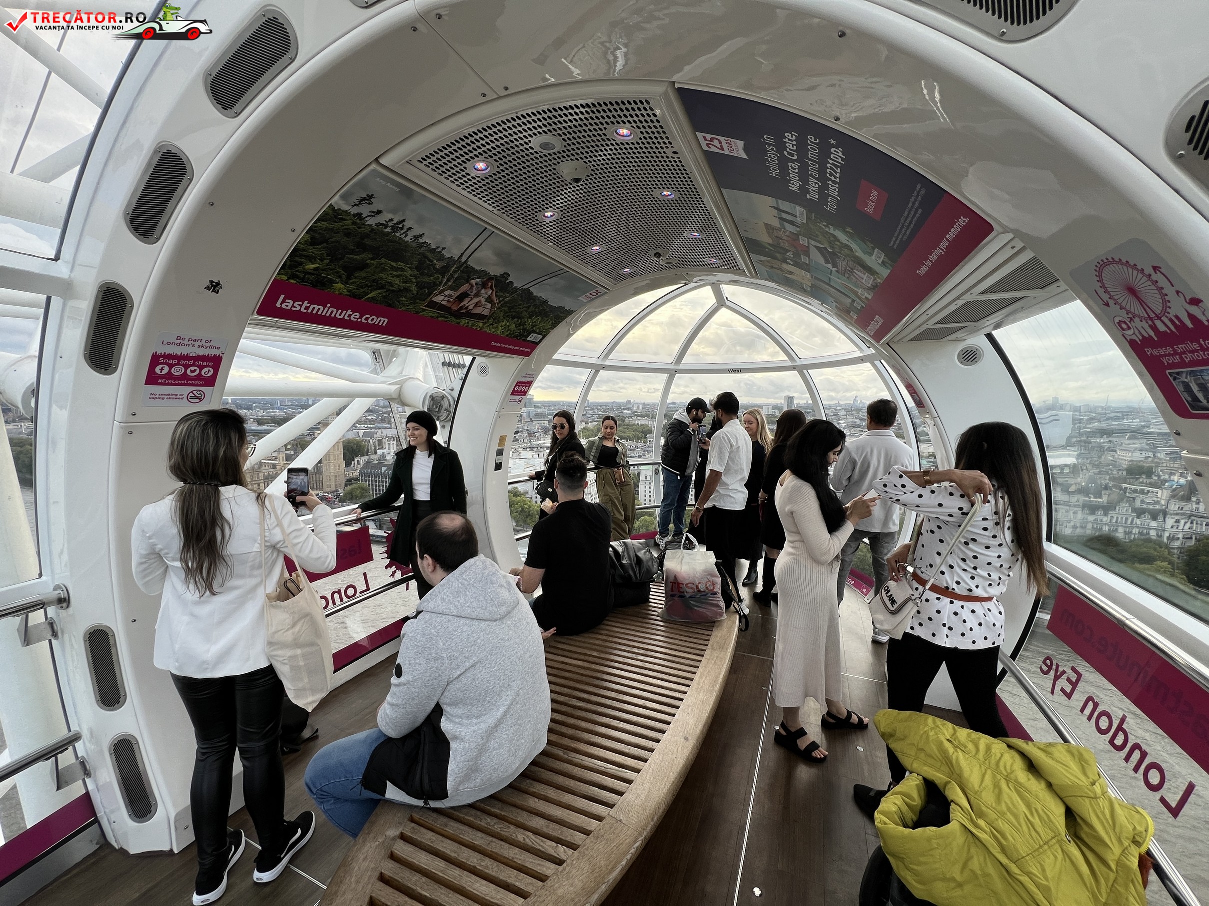 London Eye are 32 de cabine de sticlă, fiecare având o capacitate de până la 25 de persoane. Acestea sunt complet climatizate, oferind confort și o vedere panoramică excelentă, indiferent de vreme.