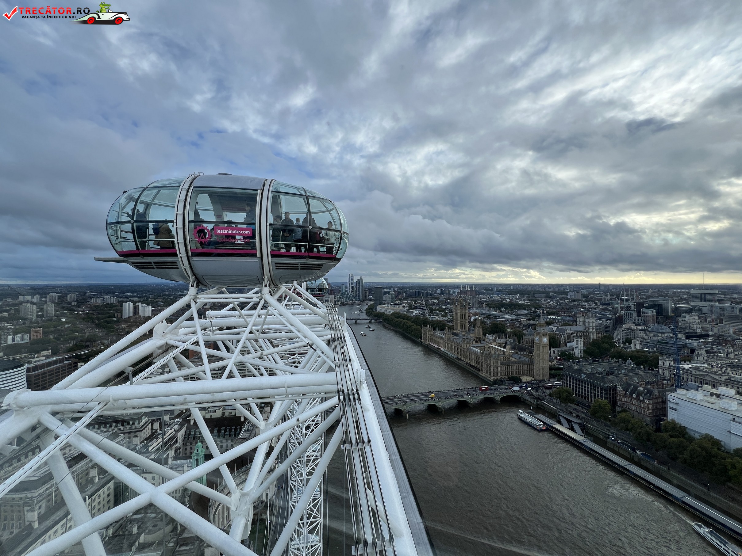 Roata din Londra se invarte foarte incet, permitand turistilor sa se imbarce fara a fi oprita complet. O tura completa dureaza aproximativ 30 de minute. Datorita design-ului deosebit al capsulelor din sticla, vizitatorii au parte o priveliste de 360 de grade a intregii capitale britanice. Multe dintre obiectivele turistice celebre din Londra sunt perfect vizibile, inclusiv, Palatul Buckingham, Catedrala St Paul si Casele Parlamentului. In zilele senine se poate vedea pana la 40 de kilometri distanta.
