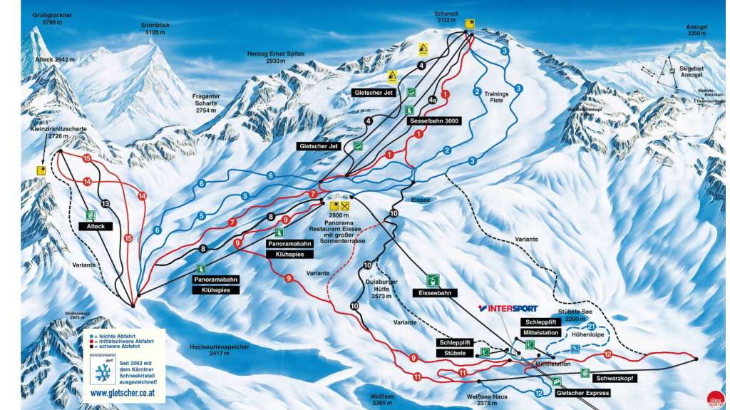 Din 1997, de cand s – a deschis linia de tren subteran, ghetarul Molltal a devenit foarte usor de accesat si cel mai stabil din punct de vedere a zapezii, din Carintia. In medie grosimea zapezii ajunge la 450 cm!