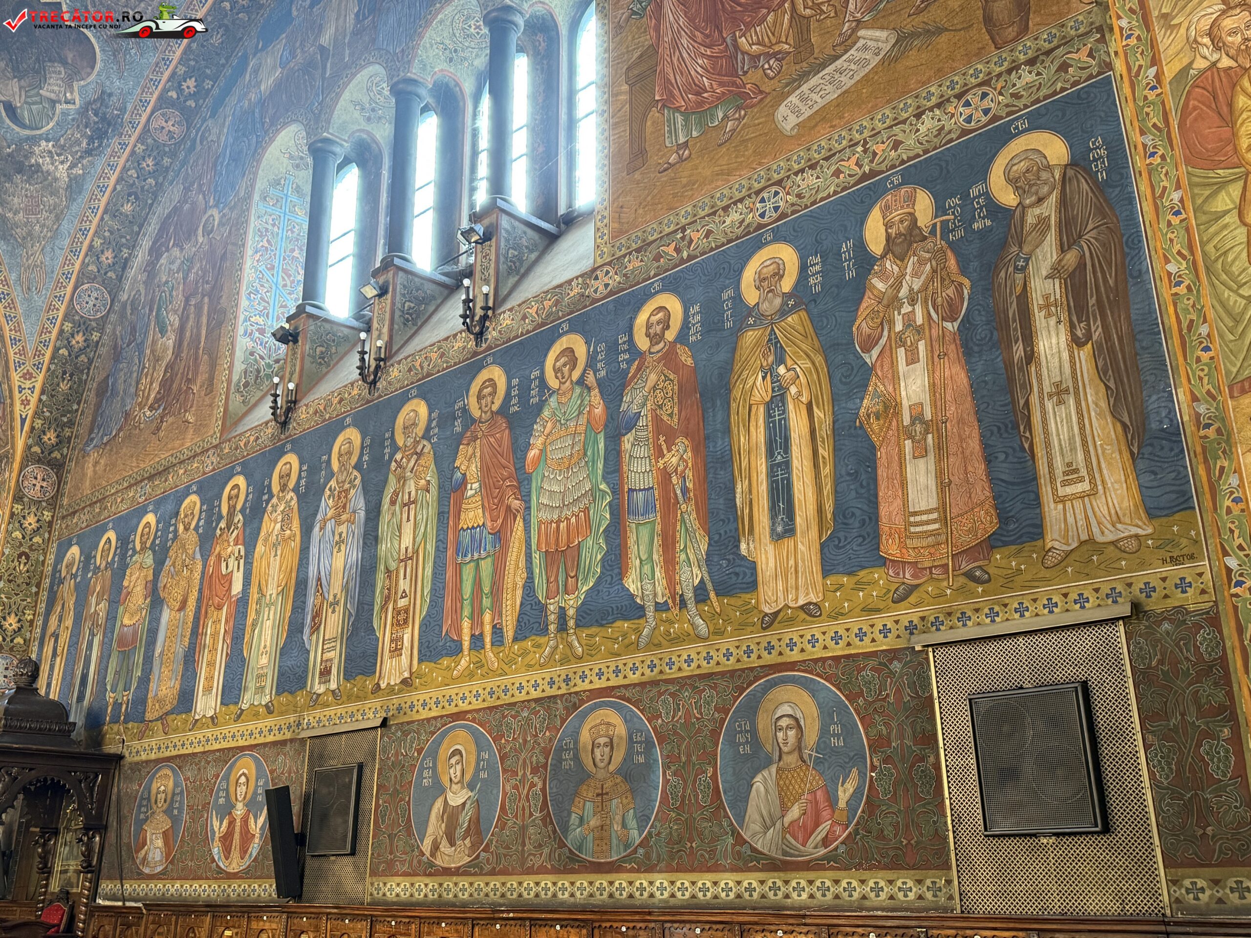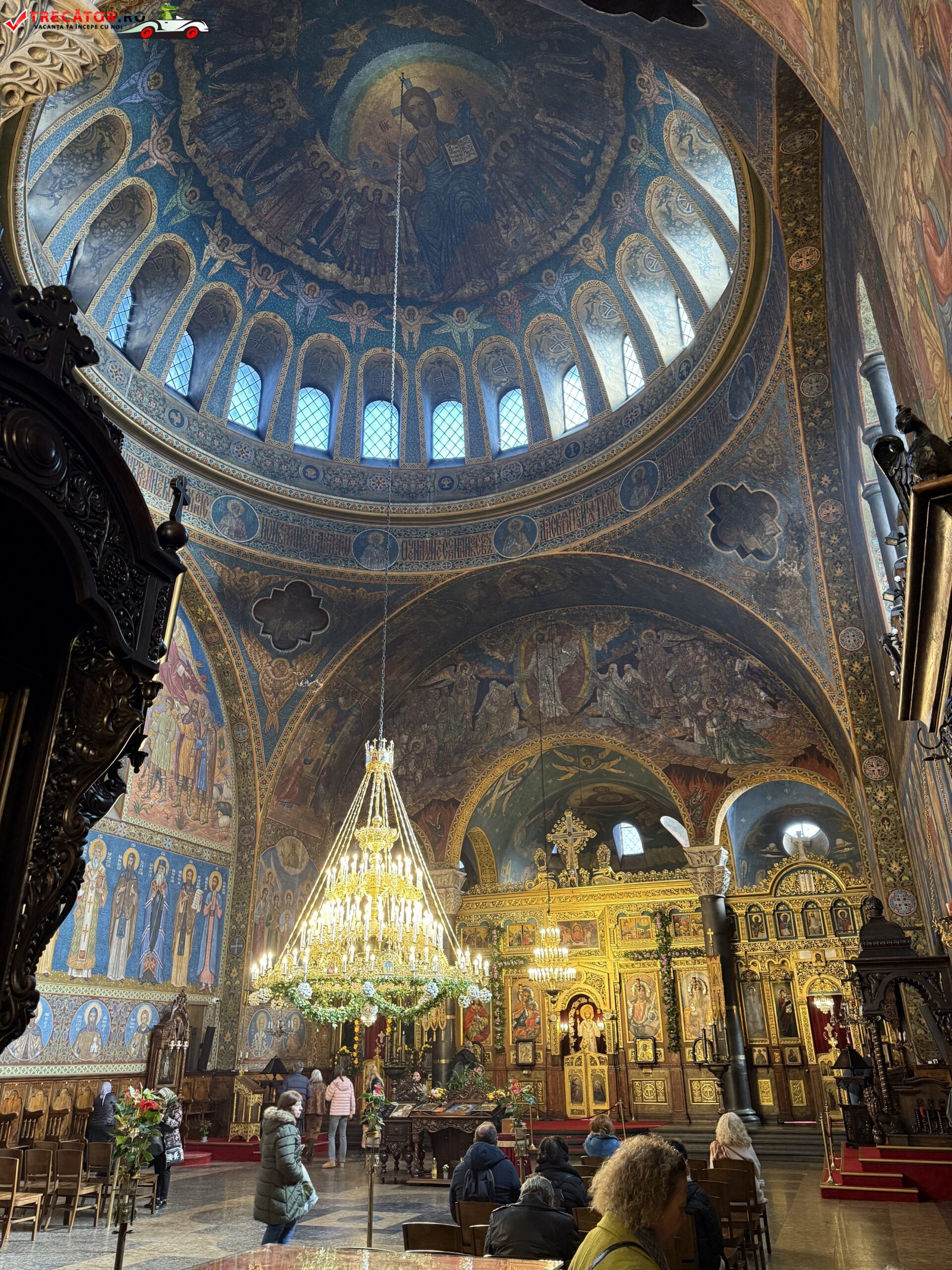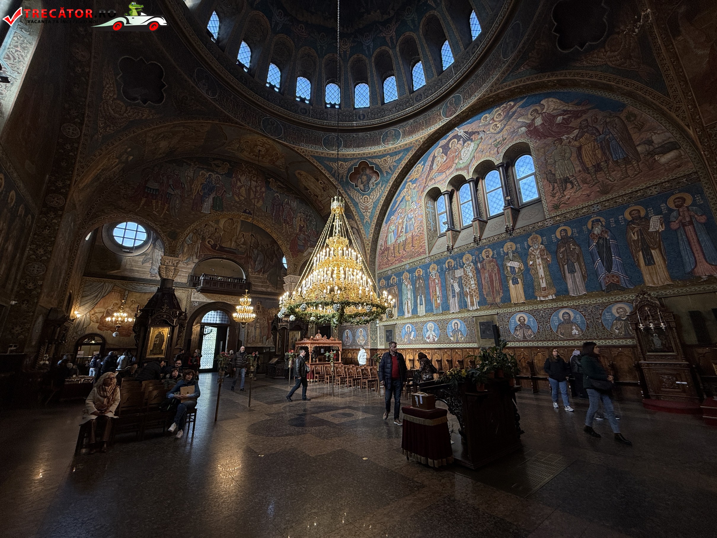 Interiorul bisericii este la fel de impresionant. Frescele, pictate în stil neobizantin, reprezintă scene biblice și chipuri ale sfinților. Iconostasul din lemn sculptat este o capodoperă a artei ortodoxe, iar candelabrele masive din bronz adaugă o notă de grandiozitate.