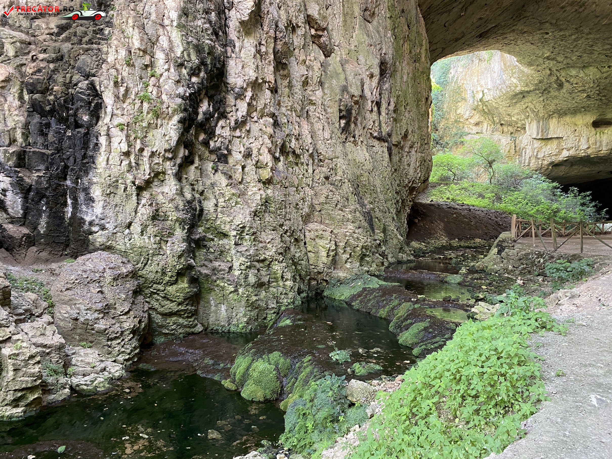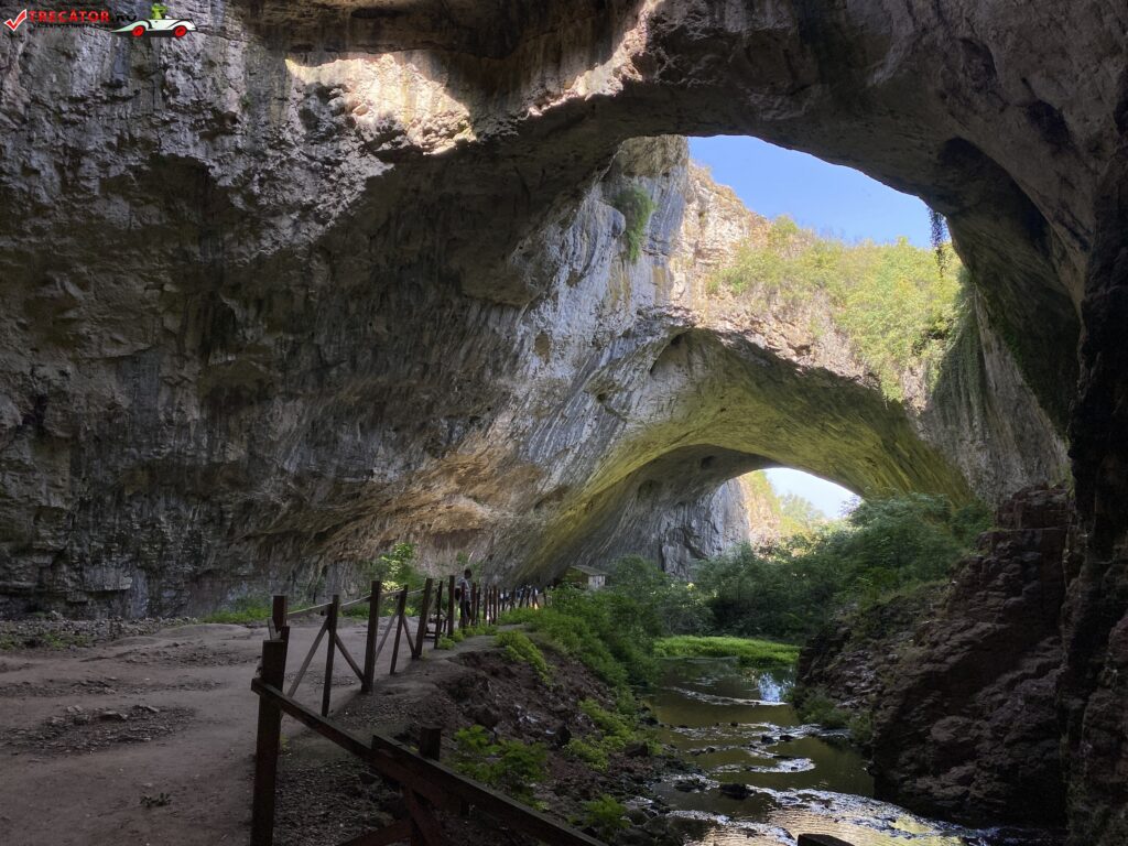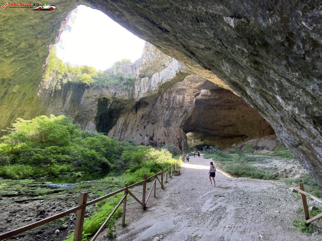 Pentru a ajunge la pestera bulgarii au construit un pod destul de mare ramas doar pietonal. Peisajul vazut de pe pod e destul de frumos, se vad si pesti in rau si albia frumoasa. Odata coborat de pe pod deja se vede intrarea inalta, de forma eliptica sau cu bolta, cam de 25-30 m si lata de mai bine de 35m, totul e intunecat si nu vezi aproape nimic decat dupa ce patrunzi usor in interiorul pesterii si in lumea de basm de acolo.