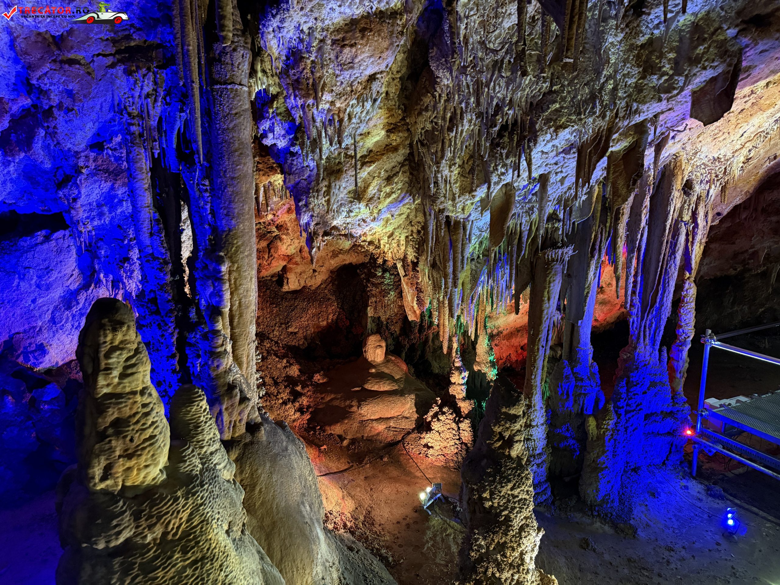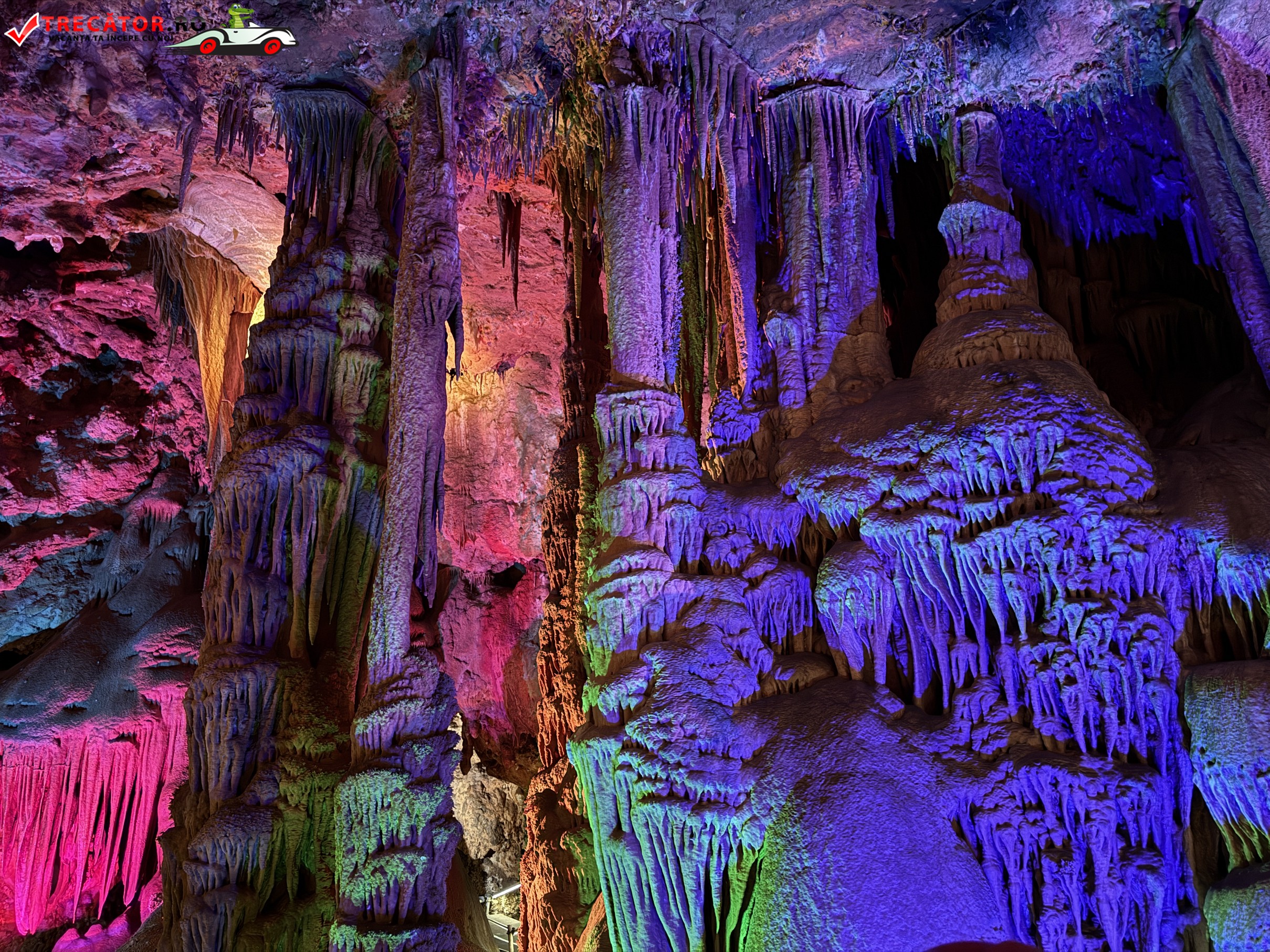 Turul parcurge cam 200 de metri de galerii subterane, care se desfăşoară prin cinci săli distincte, patru dintre ele deschise vizitatorilor. Tavanul şi pereţii sunt ornamentaţi cu stalactite, stalagmite, formaţiuni de onix, cristale asemănătoare „florilor de gheață”, corali subterani şi chiar formaţiuni rar întâlnite, cum ar fi stalactite ce cresc în lateral.