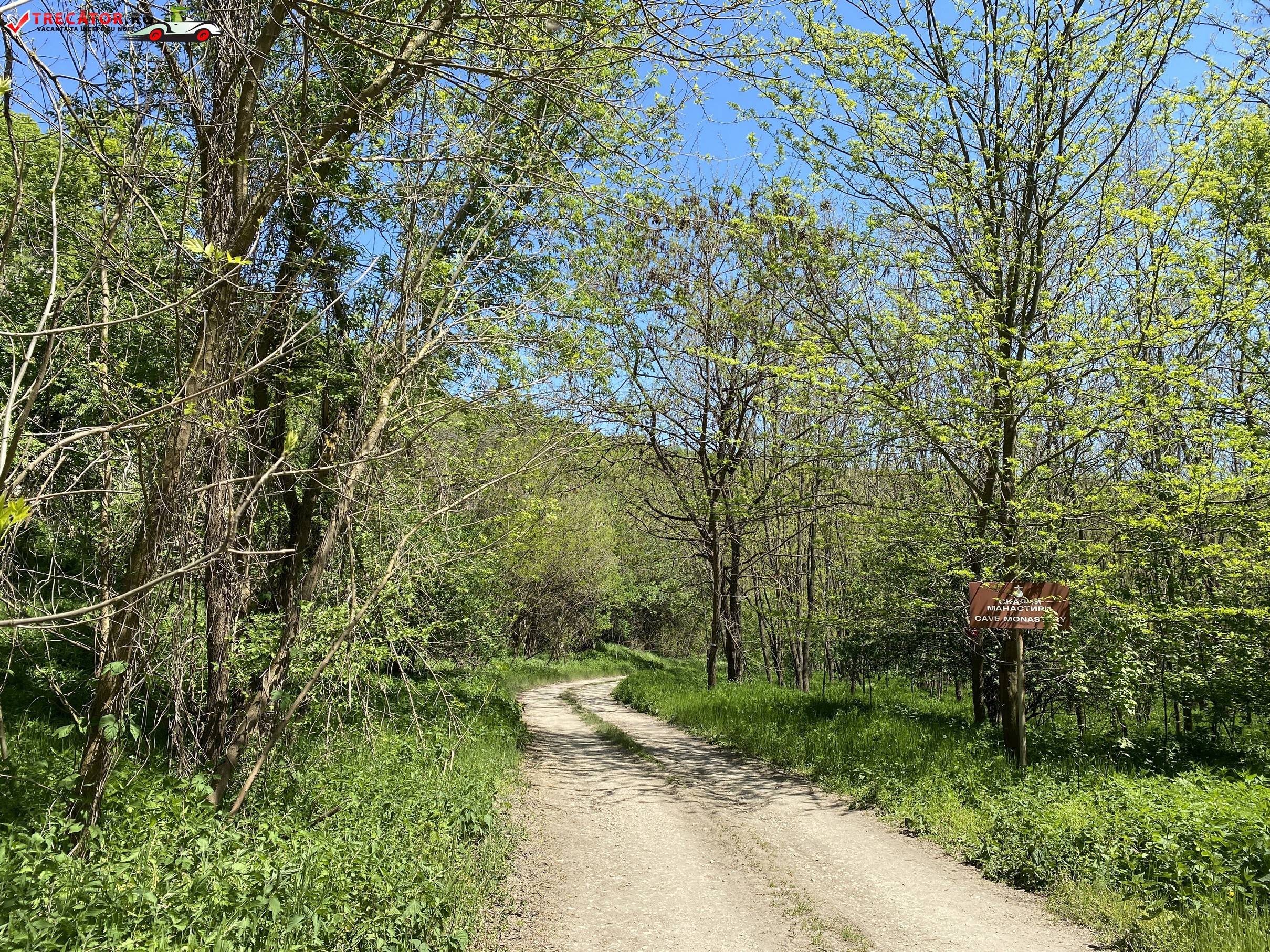 Se găsește pe partea stângă a drumului și e marcată cu un semn. Vezi fotografia de mai jos.