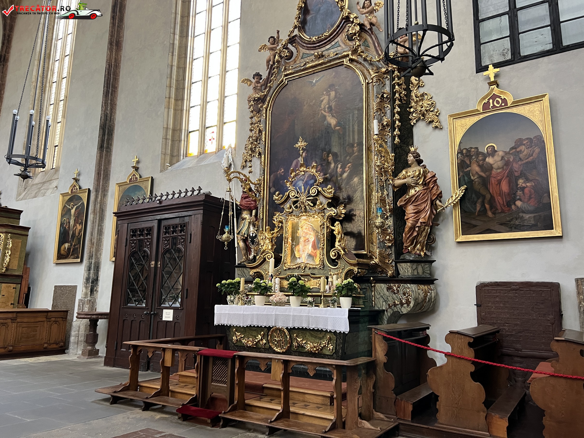 Unul dintre cele mai remarcabile elemente ale bisericii este altarul principal, o capodoperă a artei gotice. Acesta a fost sculptat în lemn de către artistul ceh Jan Hus în secolul al XV-lea și este decorat cu sculpturi ale sfinților și alegorii biblice. Altarul este situat în partea de est a bisericii, în absida principală, și este flancat de două statui înalte ale Sfântului Petru și a Sfântului Pavel.