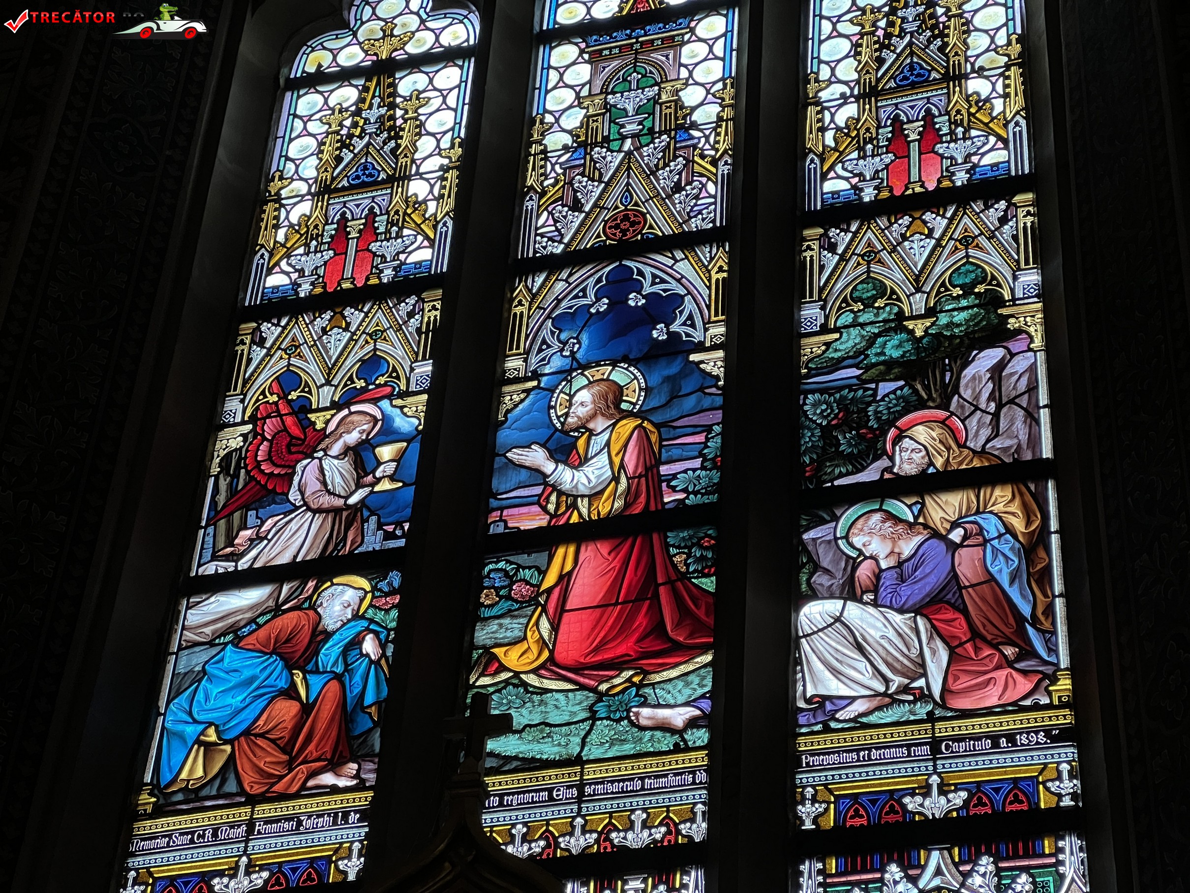 Maiestuoasă este faţada de vest, cu trei vestibule, două la baza turnurilor şi unul reprezentând intrarea principală şi frontonul triunghiular dintre turnuri. Un element distinctiv îl reprezintă decoraţiunile ce amintesc de floarea de castan, arborele care domină peisajul la Vysehrad. Ferestre cu arcuri ascuţite filtrează lumina soarelui prin vitralii.