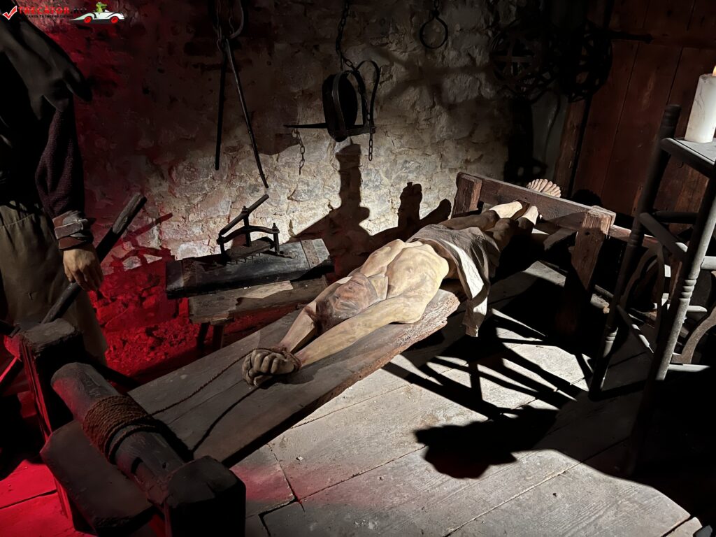 Muzeul prezintă o colecție impresionantă de peste 60 de instrumente de tortură utilizate în perioada medievală și modernă, precum dispozitive de prindere, scaune de tortură, măști de fier, cătușe, cremene și multe altele. Fiecare instrument este prezentat cu o descriere detaliată a modului în care a fost folosit și a efectelor sale asupra victimelor.