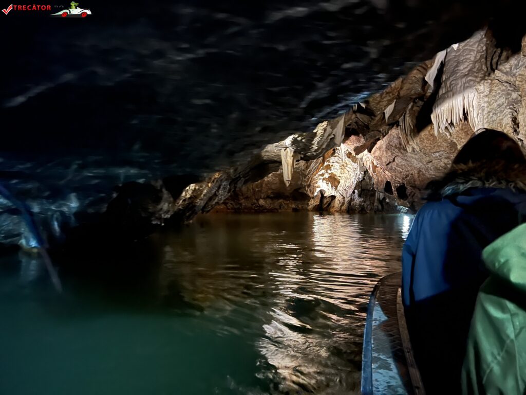O barcă cu motor preia grupurile nerăbdătoare de turişti, pentru a le trece prin feeria subterană, dată de luminile răzbind tenace de sub apă şi din colţuri de peşteră. Râul, tunelurile, calcarul alunecos de lângă tine te fac să uiţi de timp.