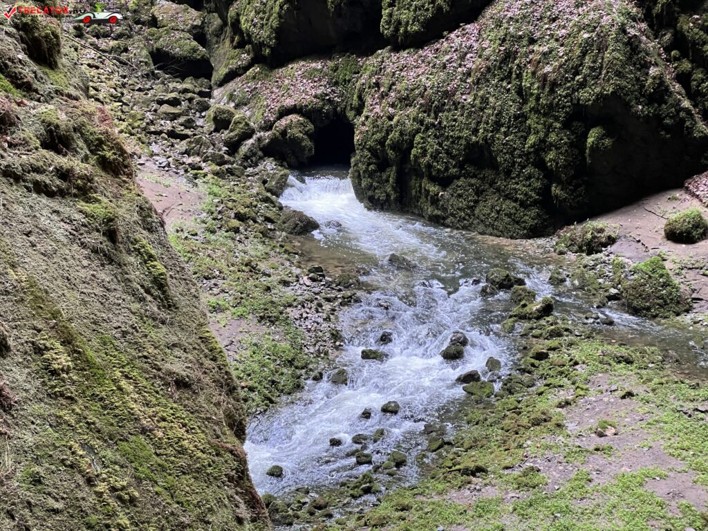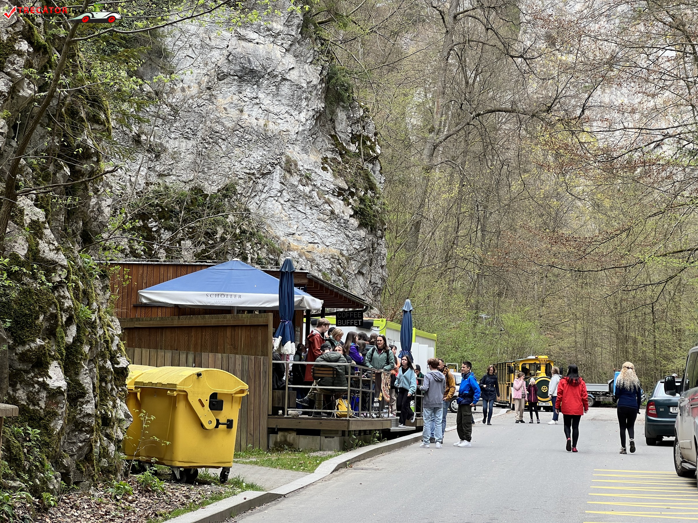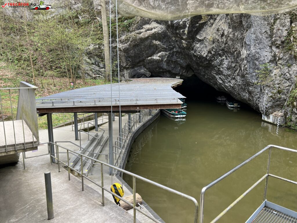 Din parcare, ca să ajungi până la intrarea în Peştera Punkva, fie alegi mica telecabină, cu un coborâş abrupt peste pereţii împăduriţi, fie o iei la pas pe drumul asfaltat, pentru o plimbare plăcută în serpentine.