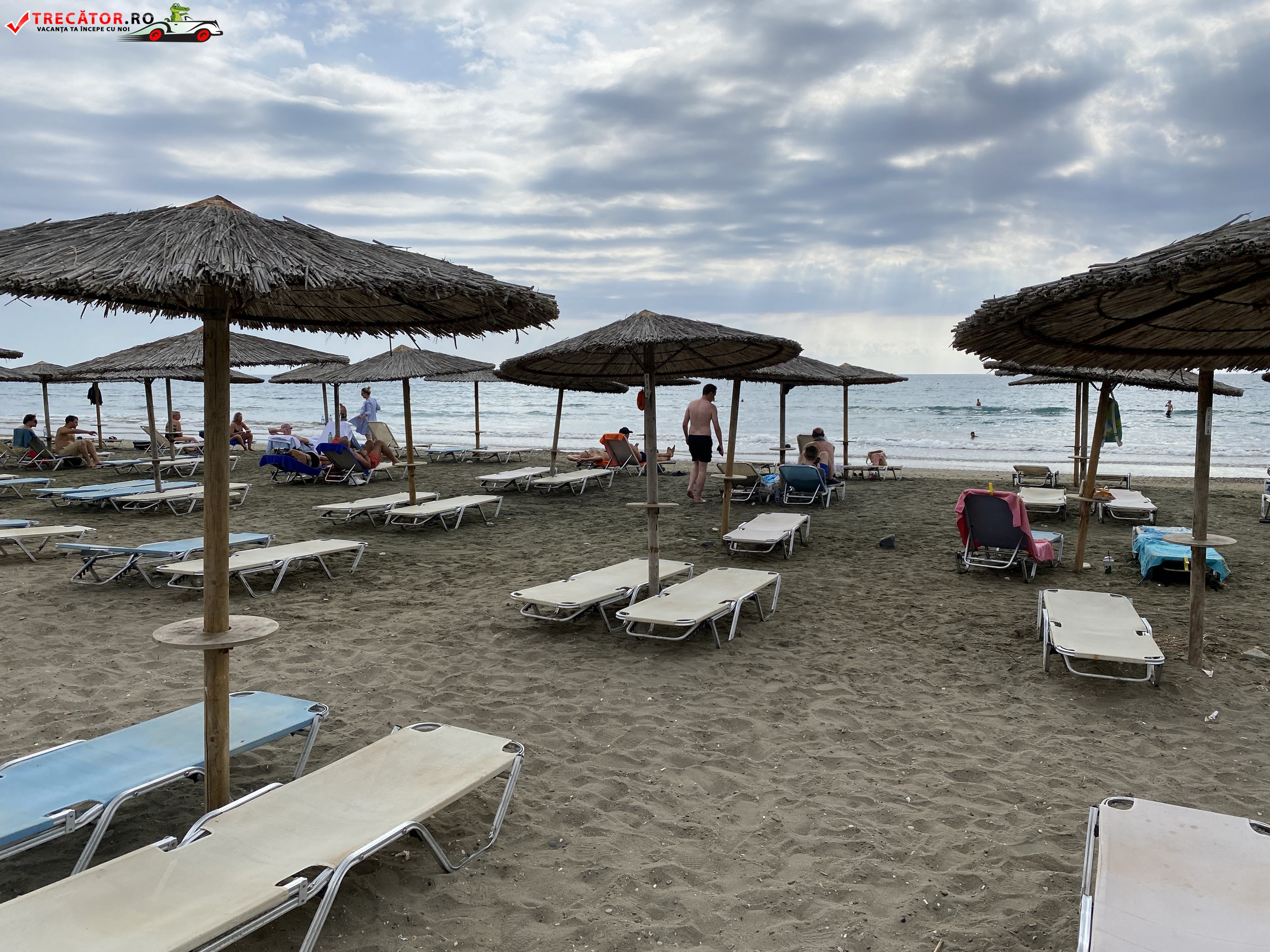 Plaja este bine echipată cu șezlonguri, umbrele, vestiare și dușuri. Pe malul mării, se găsesc câteva restaurante și taverne tradiționale, renumite pentru preparatele din pește și fructe de mare proaspete, care completează perfect atmosfera relaxantă.