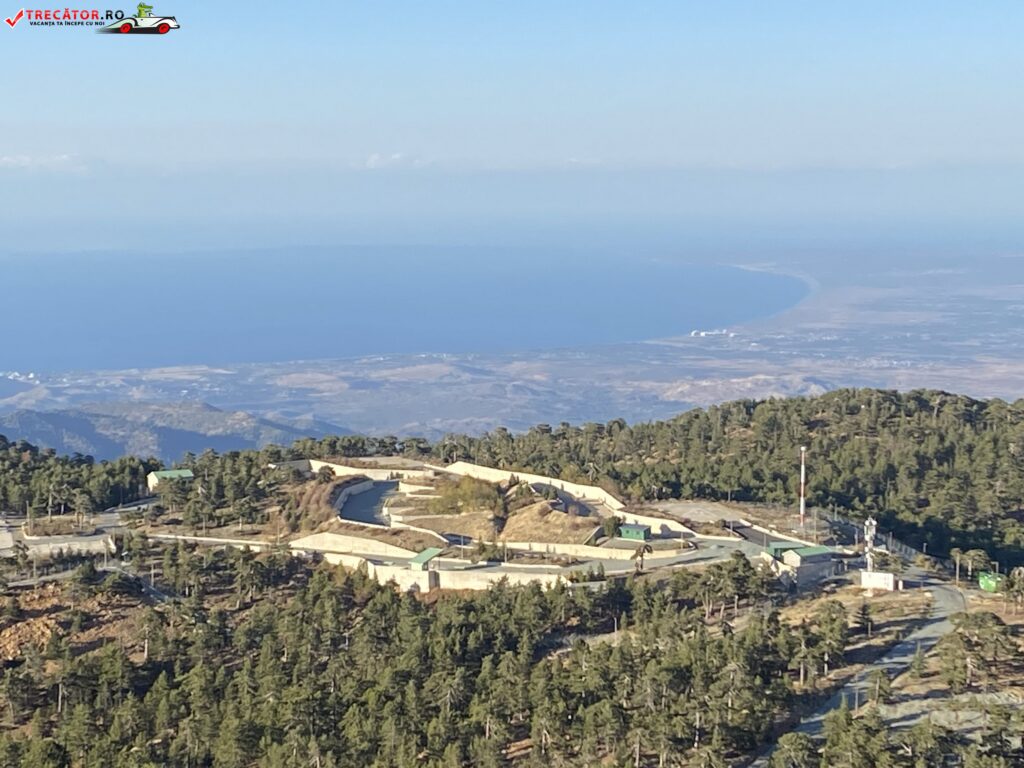 Vârful Muntelui Olimp oferă priveliști panoramice asupra întregii insule. În zilele senine, vizitatorii pot vedea coastele Mediteranei care înconjoară insula, un peisaj care îmbină muntele cu marea și oferă o experiență de neuitat.