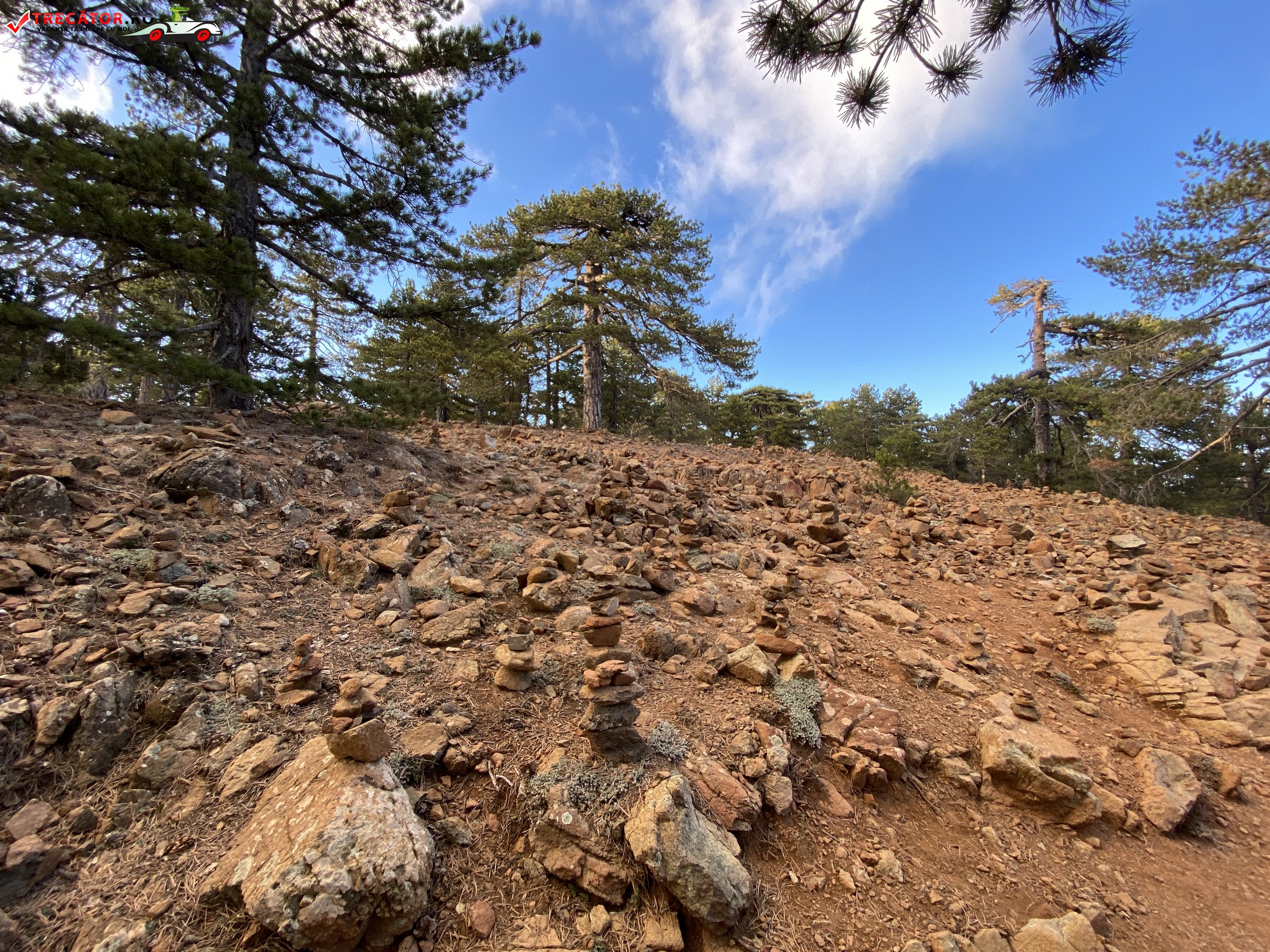 Pe Muntele Olimp din Cipru, cairns de piatră (grămezi mici de pietre așezate una peste alta) sunt un element comun pe traseele de drumeție. Aceste mici structuri de piatră sunt create atât de drumeți, cât și de localnici, având rolul de a marca traseele sau de a oferi ghidaj în zone mai puțin clar definite de semnalizarea tradițională. Ele sunt întâlnite de-a lungul principalelor trasee, precum Artemis și Atalante, și servesc ca puncte de orientare pentru cei care urcă spre vârful muntelui sau explorează împrejurimile.