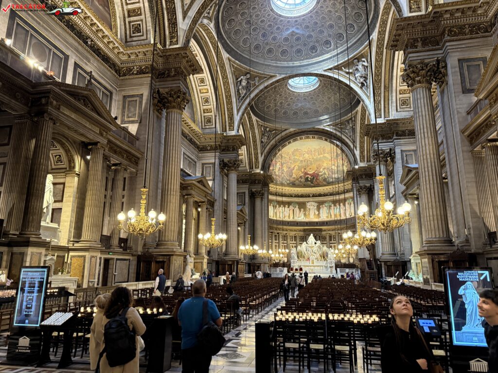 Biserica La Madeleine impresionează prin cele 52 de coloane corintice, fiecare având 20 de metri înălțime, care înconjoară edificiul. Frontonul este decorat cu sculptura „Judecata de Apoi” realizată de Philippe Joseph Henri Lemaire, iar ușile de bronz, opera lui Henri de Triqueti, prezintă scene din cele Zece Porunci.