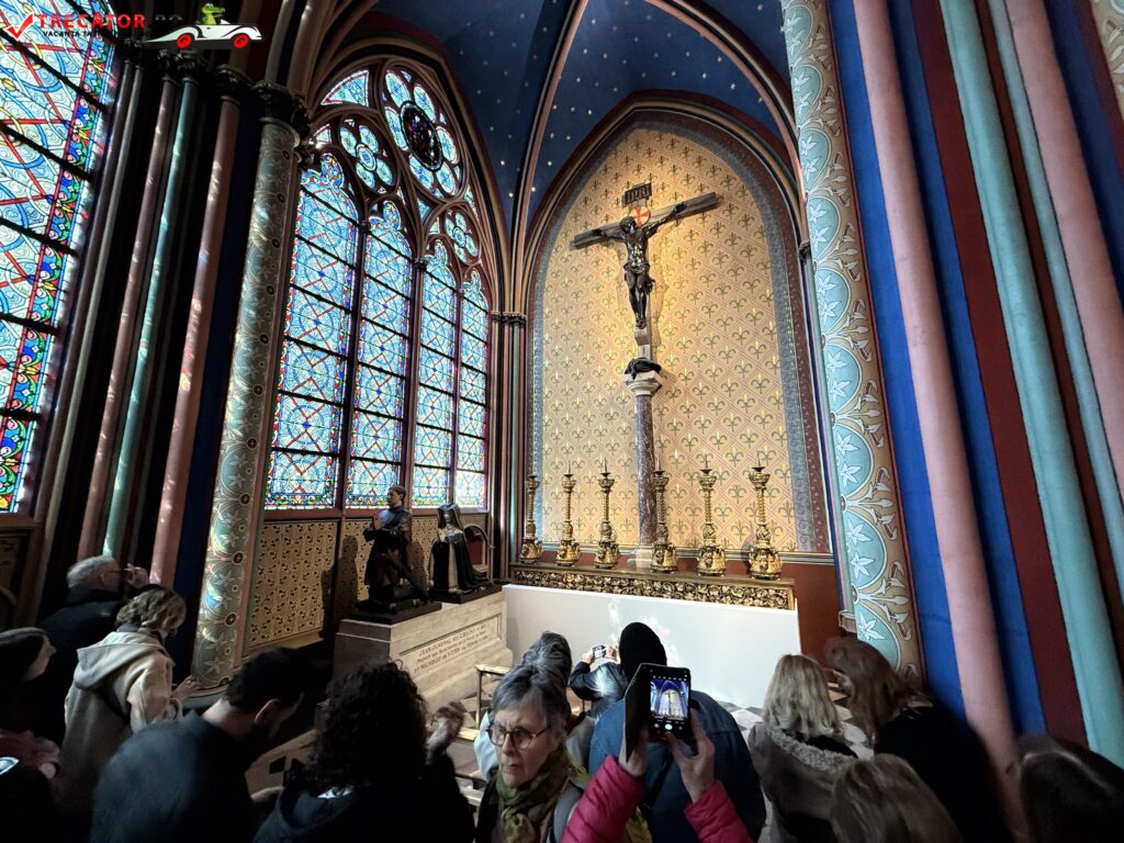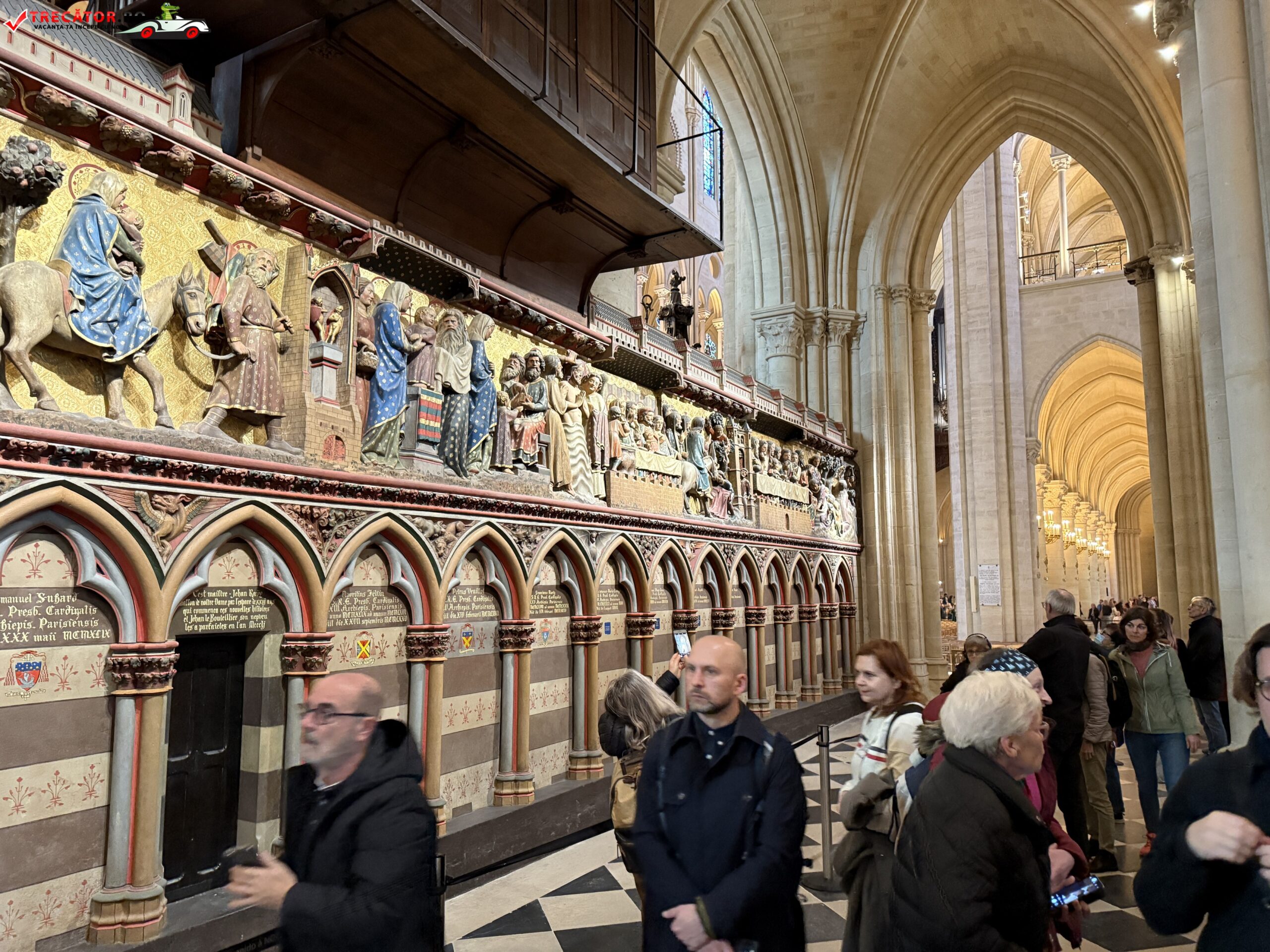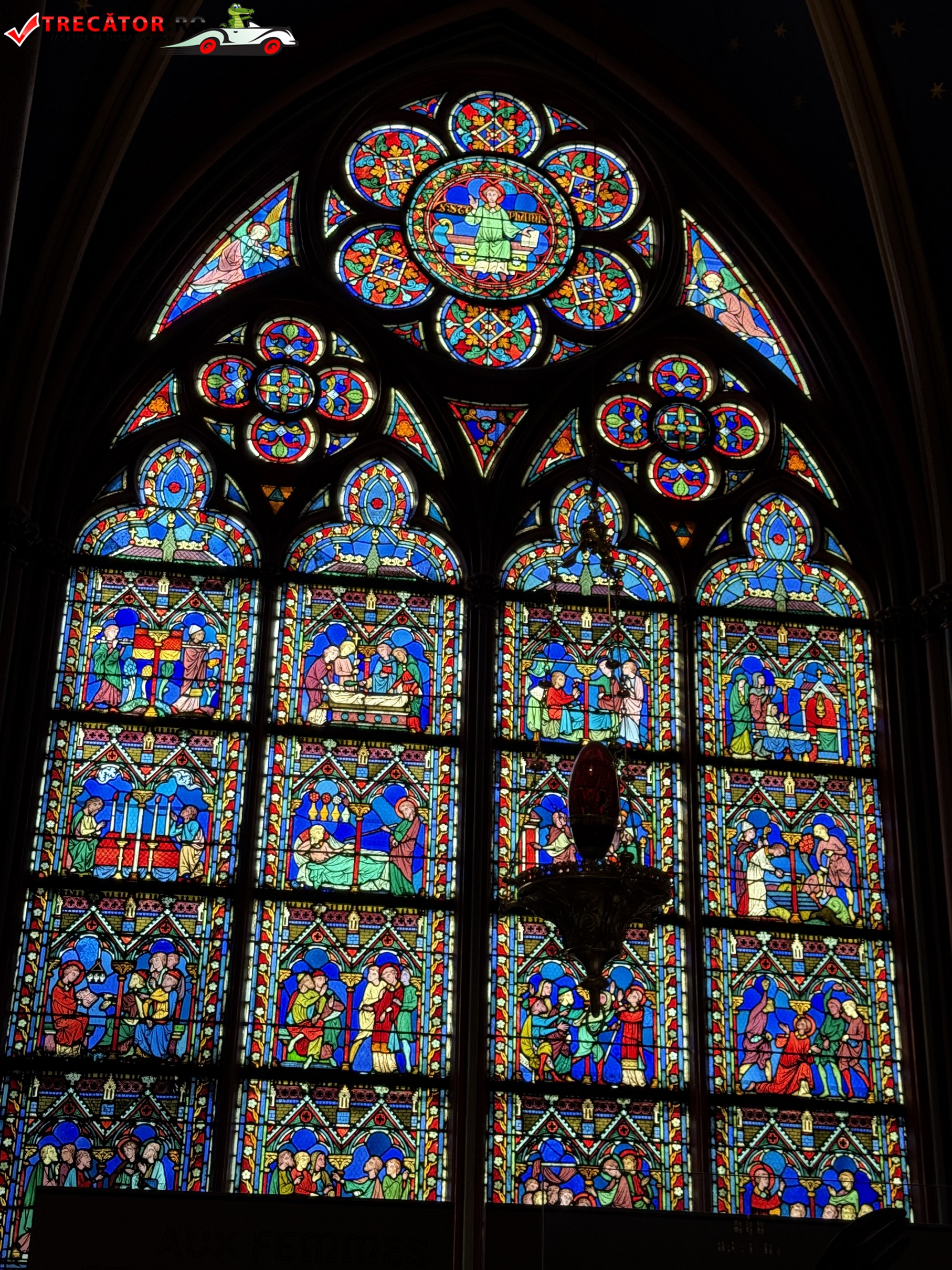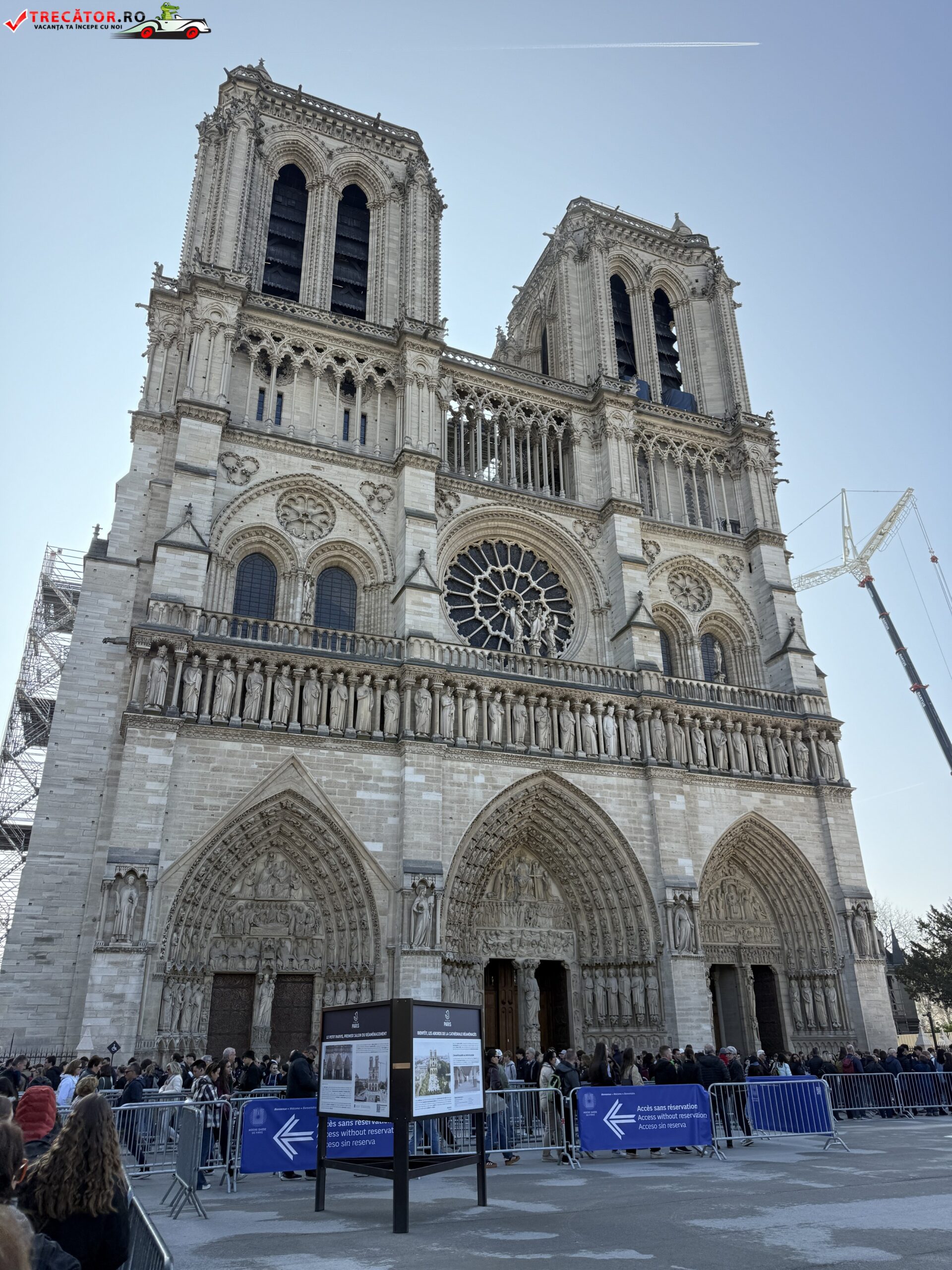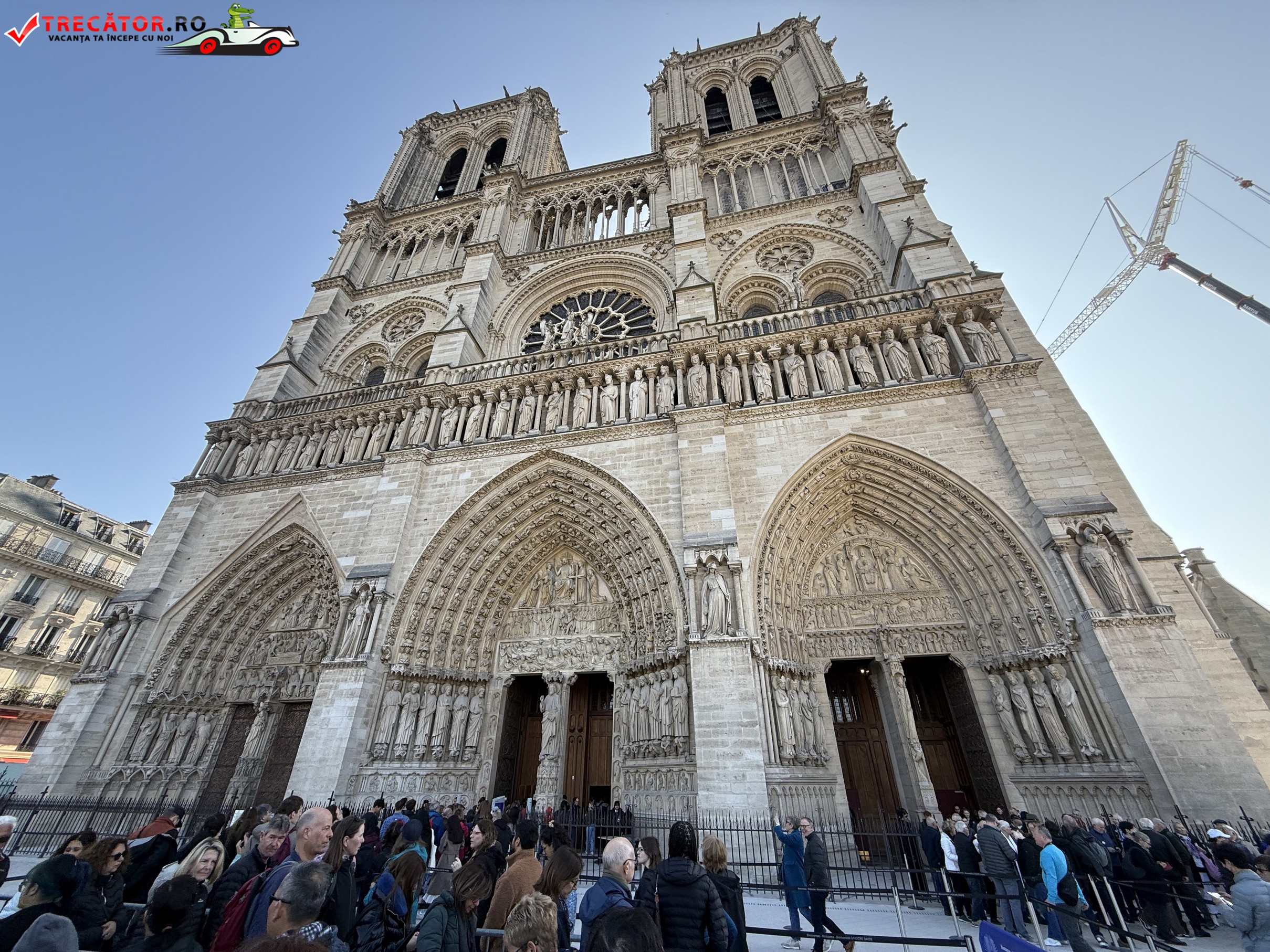 Catedrala Notre-Dame din Paris, redeschisă în decembrie 2024 după restaurarea post-incendiu, impresionează prin vitraliile gotice, inclusiv cele trei rozete, și sculptura „Pietà” de Nicolas Coustou. Interiorul, luminat de un sistem modern cu 2.000 de microproiectoare, evidențiază bolțile înalte și coloanele masive. Vizitatorii pot admira Coroana de Spini, relicvă creștină de mare valoare, și altarul de bronz recent consacrat. Galeria superioară oferă o perspectivă panoramică asupra navei și a orgii monumentale.