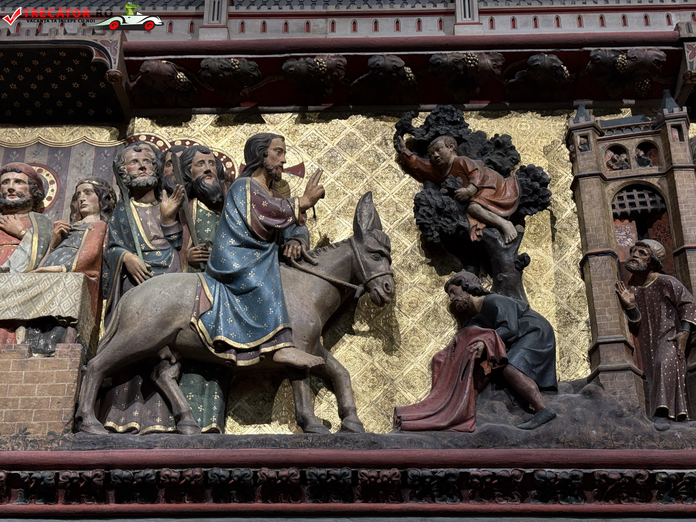 Mesaje sculptate în piatră prezintă scene din viaţa Fecioarei, de la încoronorări şi din Judecata de Apoi.