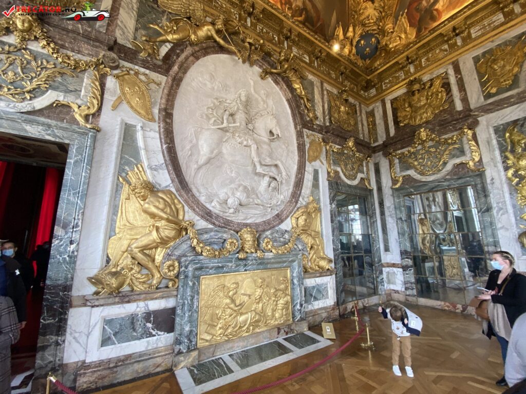 Sala Oglinzilor, lunga de 73 de metri, lata de 10,5 metri si inalta de 12,3 metri are pe tavan pictate cateva scene din viata regelui Ludovic al XIV-lea din momentul in care a inceput domnia in anul 1661 si pana in anul 1678 cand a fost pacea din Nijmegen.