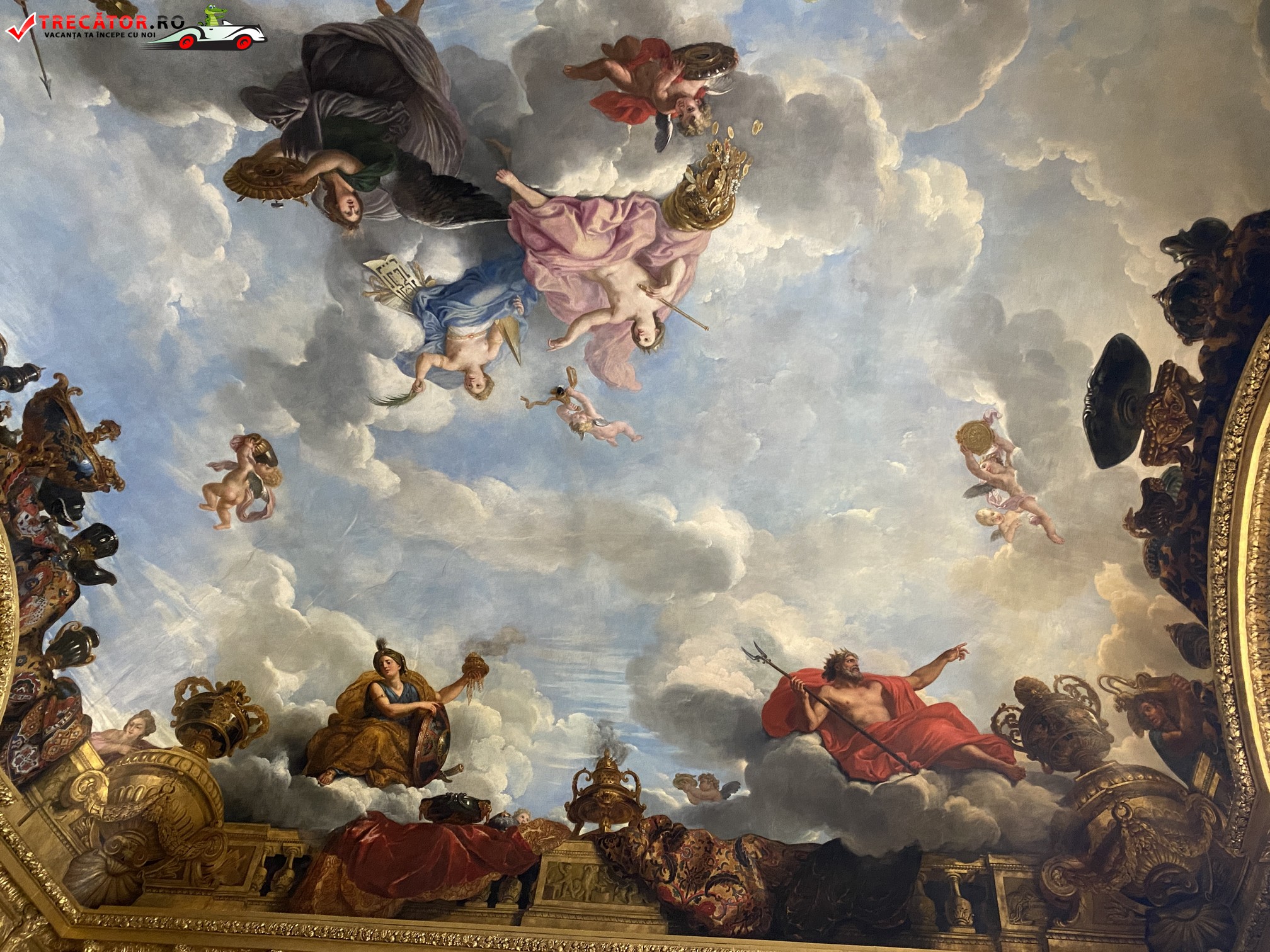 Sala Oglinzilor, lunga de 73 de metri, lata de 10,5 metri si inalta de 12,3 metri are pe tavan pictate cateva scene din viata regelui Ludovic al XIV-lea din momentul in care a inceput domnia in anul 1661 si pana in anul 1678 cand a fost pacea din Nijmegen.