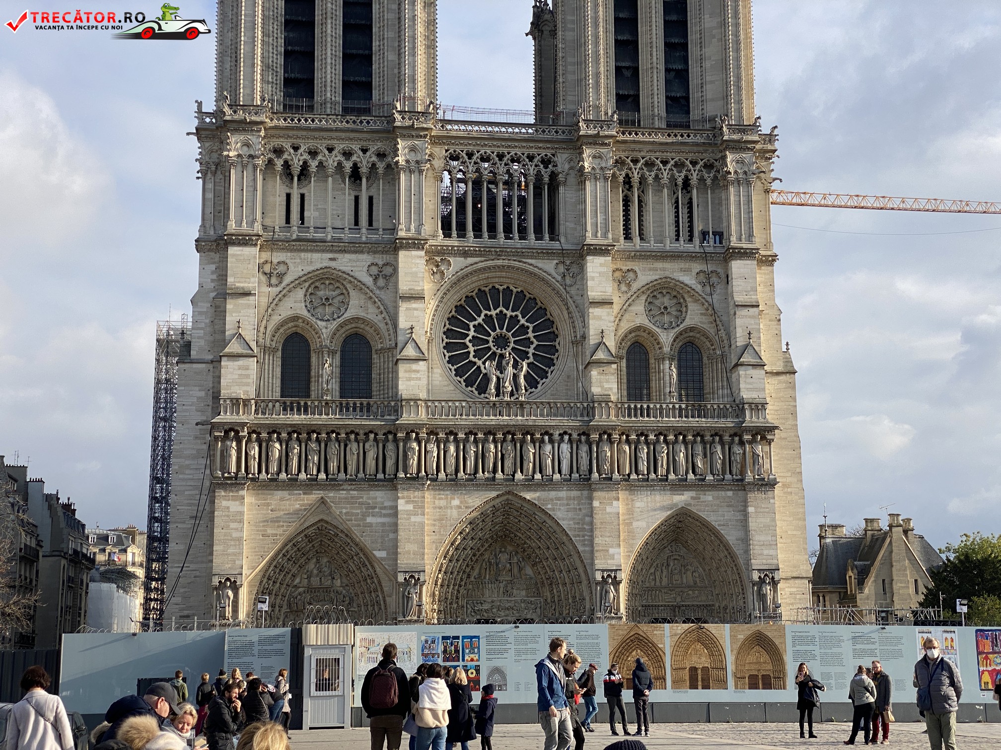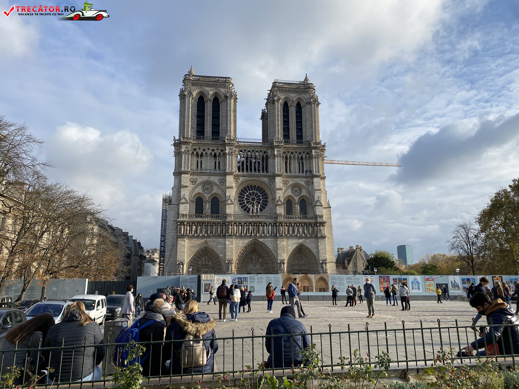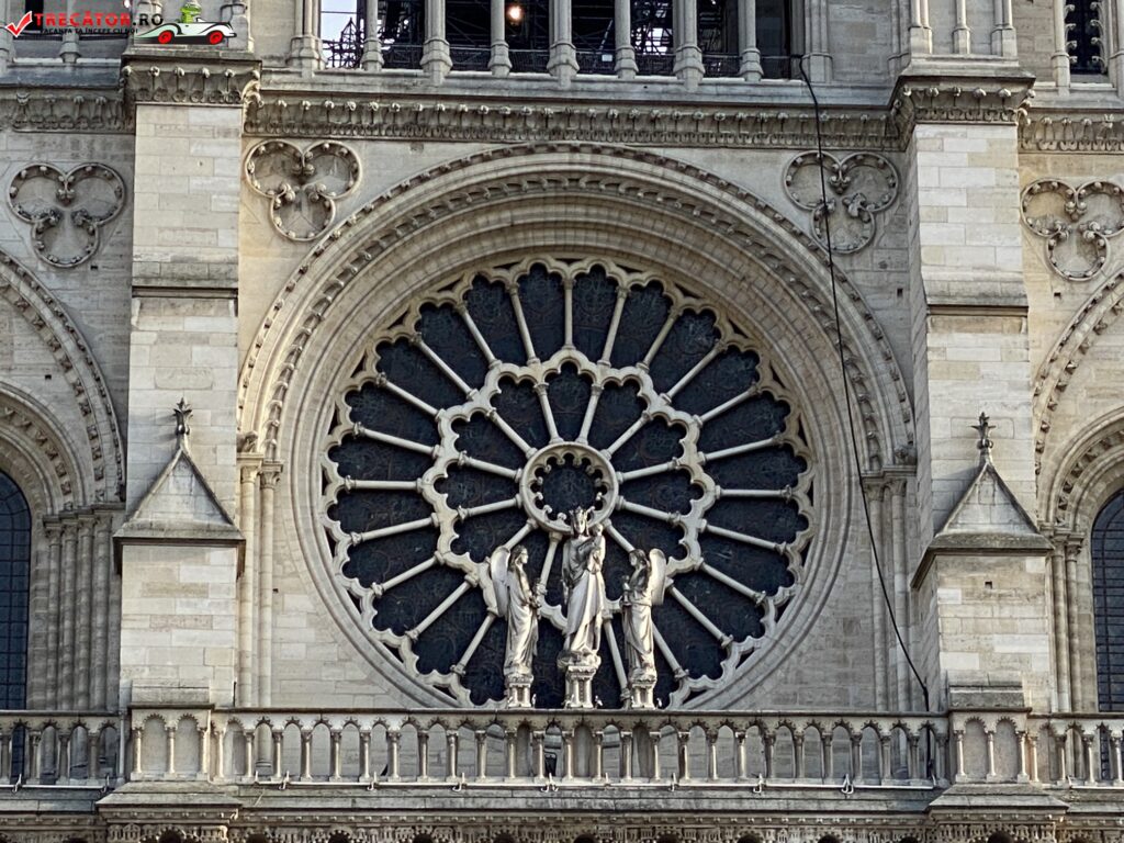 Catedrala Notre-Dame din Paris, redeschisă în decembrie 2024 după restaurarea post-incendiu, impresionează prin vitraliile gotice, inclusiv cele trei rozete, și sculptura „Pietà” de Nicolas Coustou. Interiorul, luminat de un sistem modern cu 2.000 de microproiectoare, evidențiază bolțile înalte și coloanele masive. Vizitatorii pot admira Coroana de Spini, relicvă creștină de mare valoare, și altarul de bronz recent consacrat. Galeria superioară oferă o perspectivă panoramică asupra navei și a orgii monumentale.