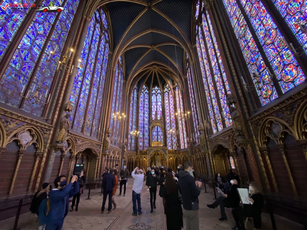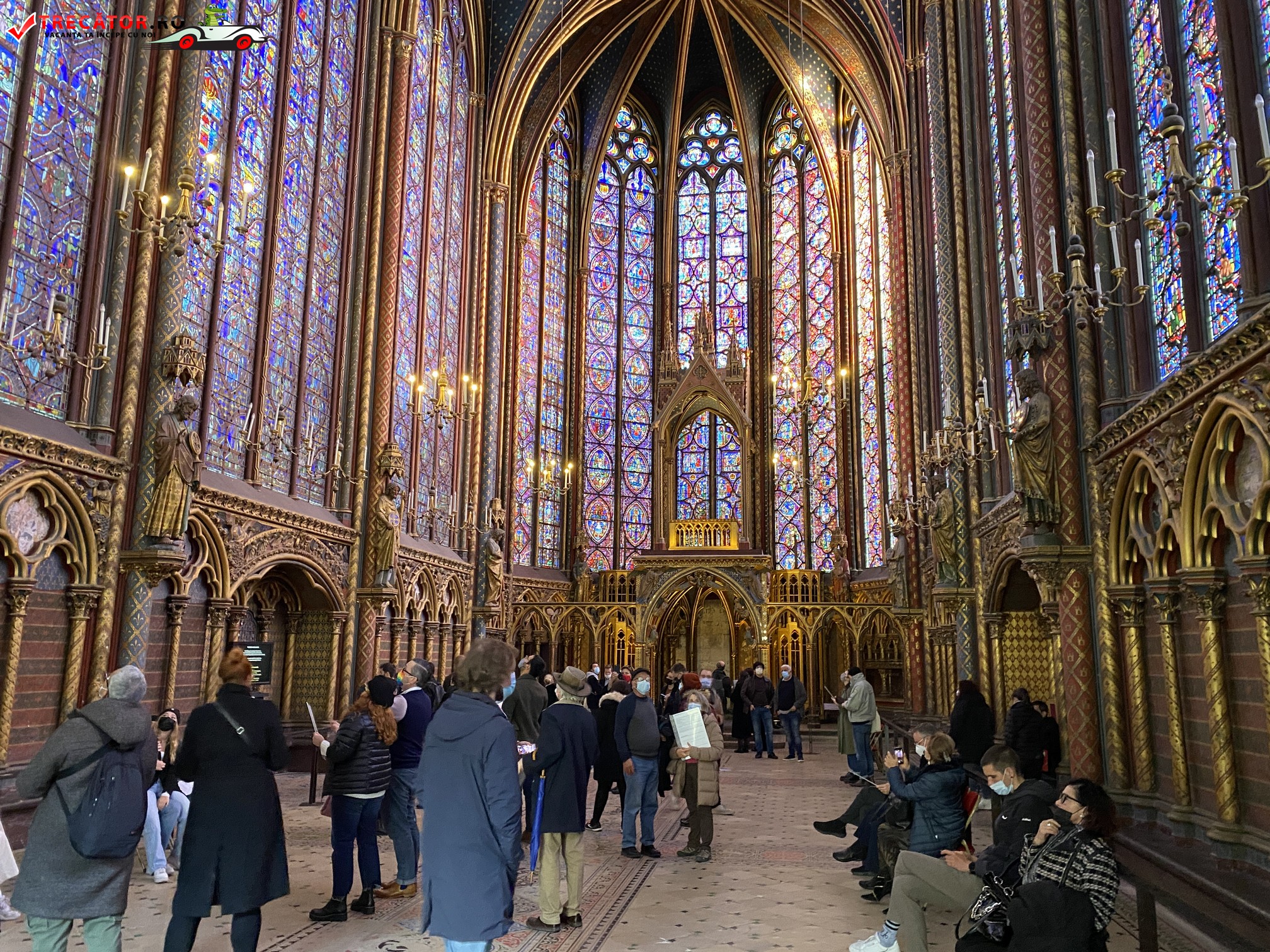 Sfanta Capela este renumita si foarte bine cunoscuta mai ales pentru vitraliile sale imense si bogat colorate, care acopera o suprafata de aproape 600 de metri patrati. Doua treimi din vitraliile existente azi sunt lucrarile originale de la inceput, reprezentand cele mai bune exemple ale mestesugarilor sticlari ai secolului al XII-lea.