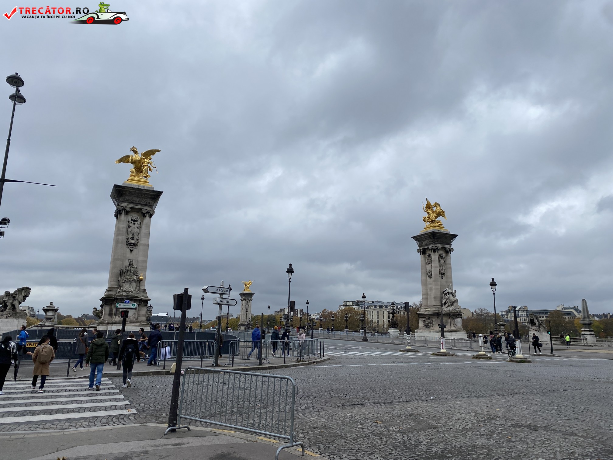 Podul Alexandre III se afla peste raul Sena si leaga Bulevardul Champs-Élysées de cartierul Invalides, unde se afla Domul Invalizilor (Pe partea ce leaga Bulevardul Champs-Élysées se afla cele doua palate: Petit Palais si Grand Palais).