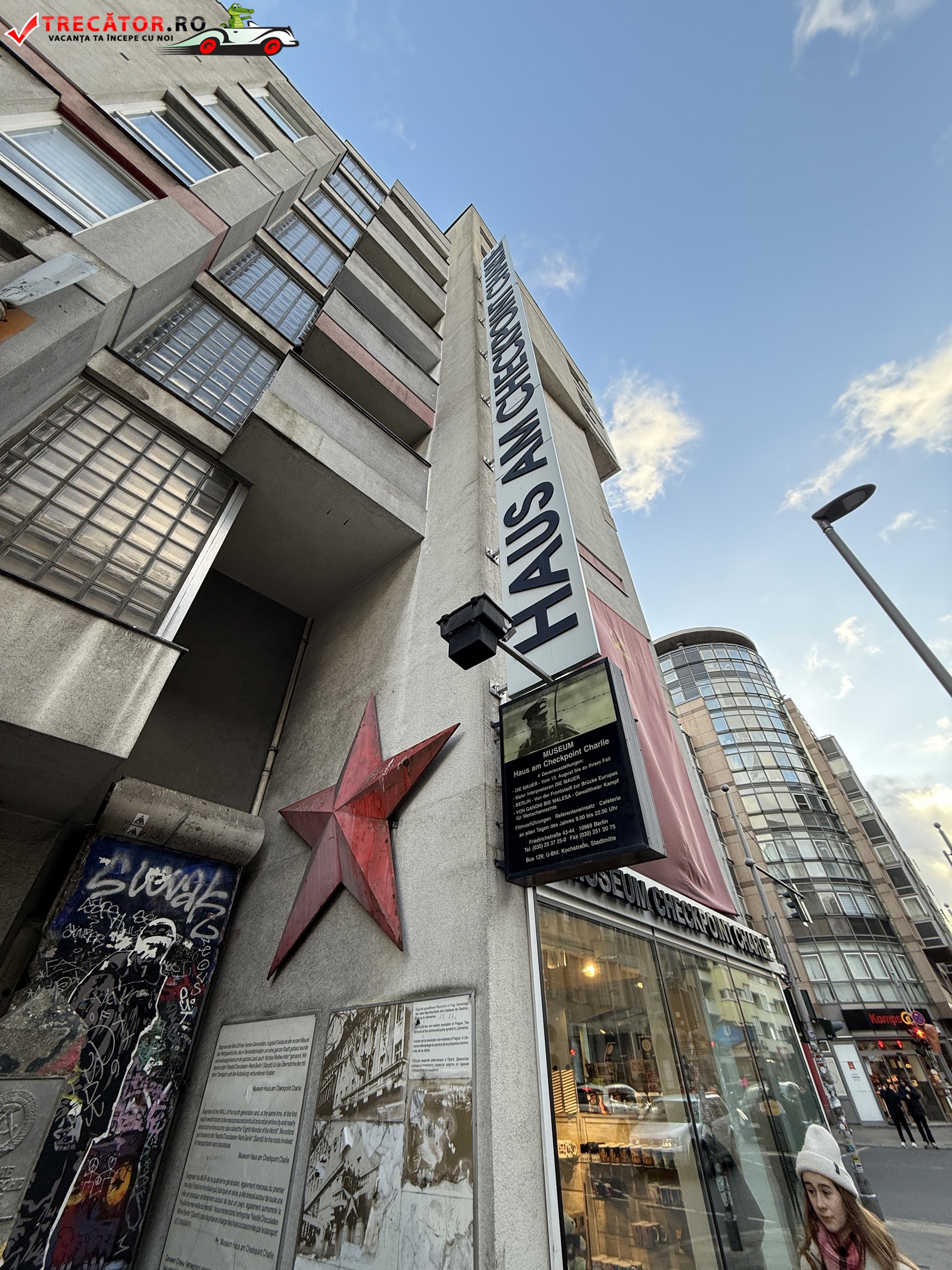 Checkpoint Charlie a fost unul dintre cele mai cunoscute puncte de trecere între Berlinul de Est și Berlinul de Vest în timpul Războiului Rece, simbolizând divizarea orașului și tensiunile geopolitice ale acelei perioade. Situat la intersecția străzilor Friedrichstraße și Zimmerstraße, acest punct de control a fost martorul unor evenimente istorice semnificative și a devenit un simbol al confruntării dintre Est și Vest.