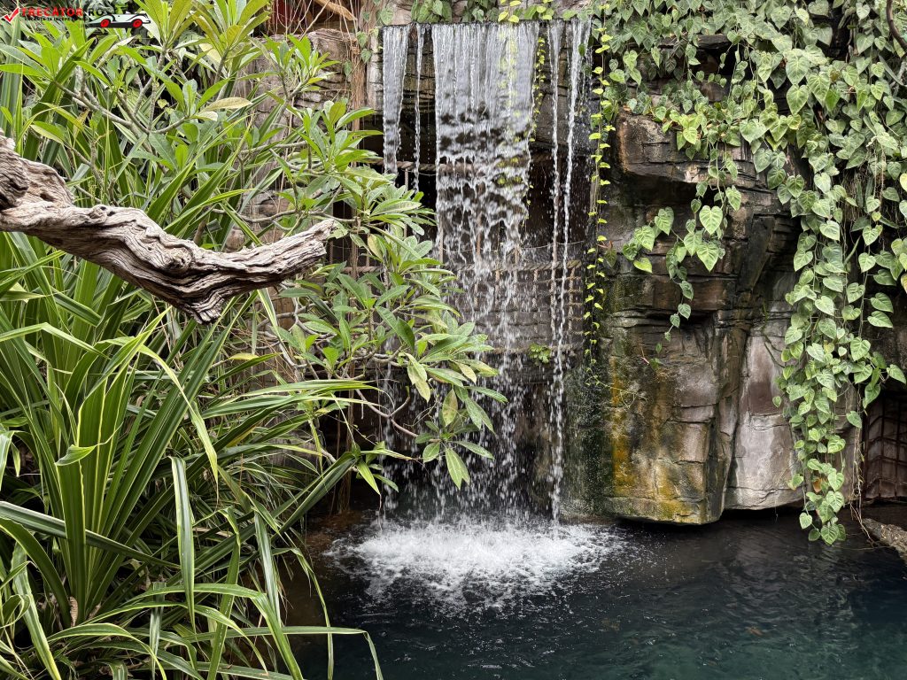 Ceea ce impresionează încă de la început este atmosfera – o căldură umedă te învăluie imediat ce pășești înăuntru, acompaniată de sunete de păsări, broaște și zgomote discrete ale apei. Totul este gândit pentru a te transporta în junglă. Vegetația luxuriantă, cascadele și lumina difuză dau senzația că te-ai rătăcit într-o pădure tropicală. Printre crengi, vizitatorii pot zări lemuri curioși, păsări colorate sau reptile care se mișcă silențios, contopindu-se cu decorul.
