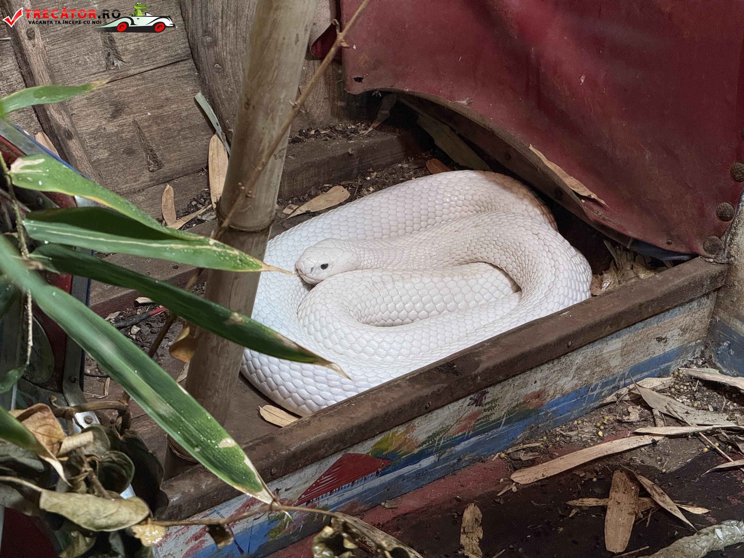 Unul dintre punctele care stârnesc deopotrivă curiozitate și teamă este „Satul șerpilor veninoși”. Aici pot fi admirate, în siguranță, unele dintre cele mai periculoase reptile de pe planetă: cobre, mambas sau vipere exotice. Spațiul este amenajat astfel încât să sugereze un sat tropical, cu detalii arhitecturale tradiționale și mici surprize vizuale, ceea ce face vizita nu doar educativă, ci și captivantă.