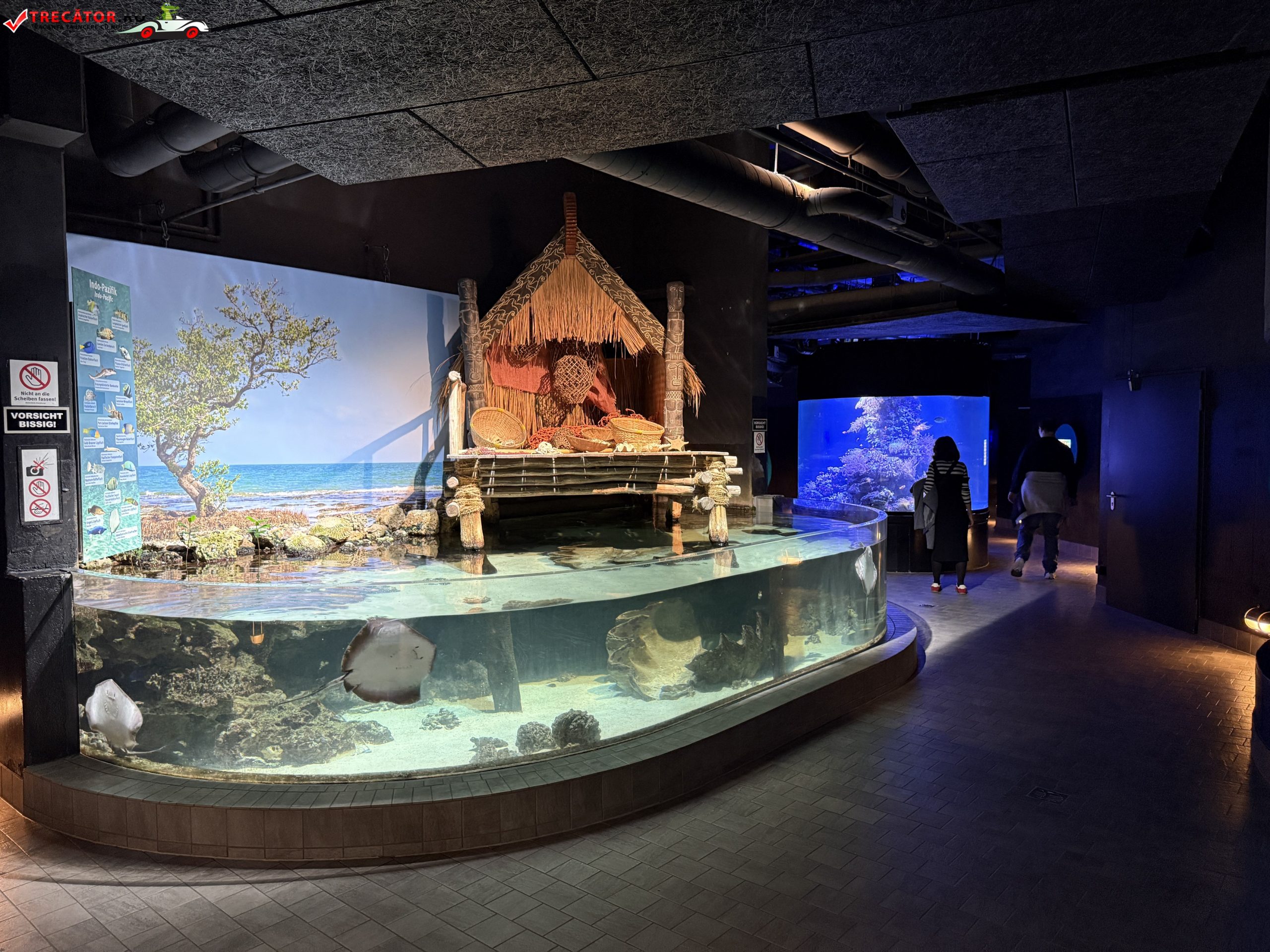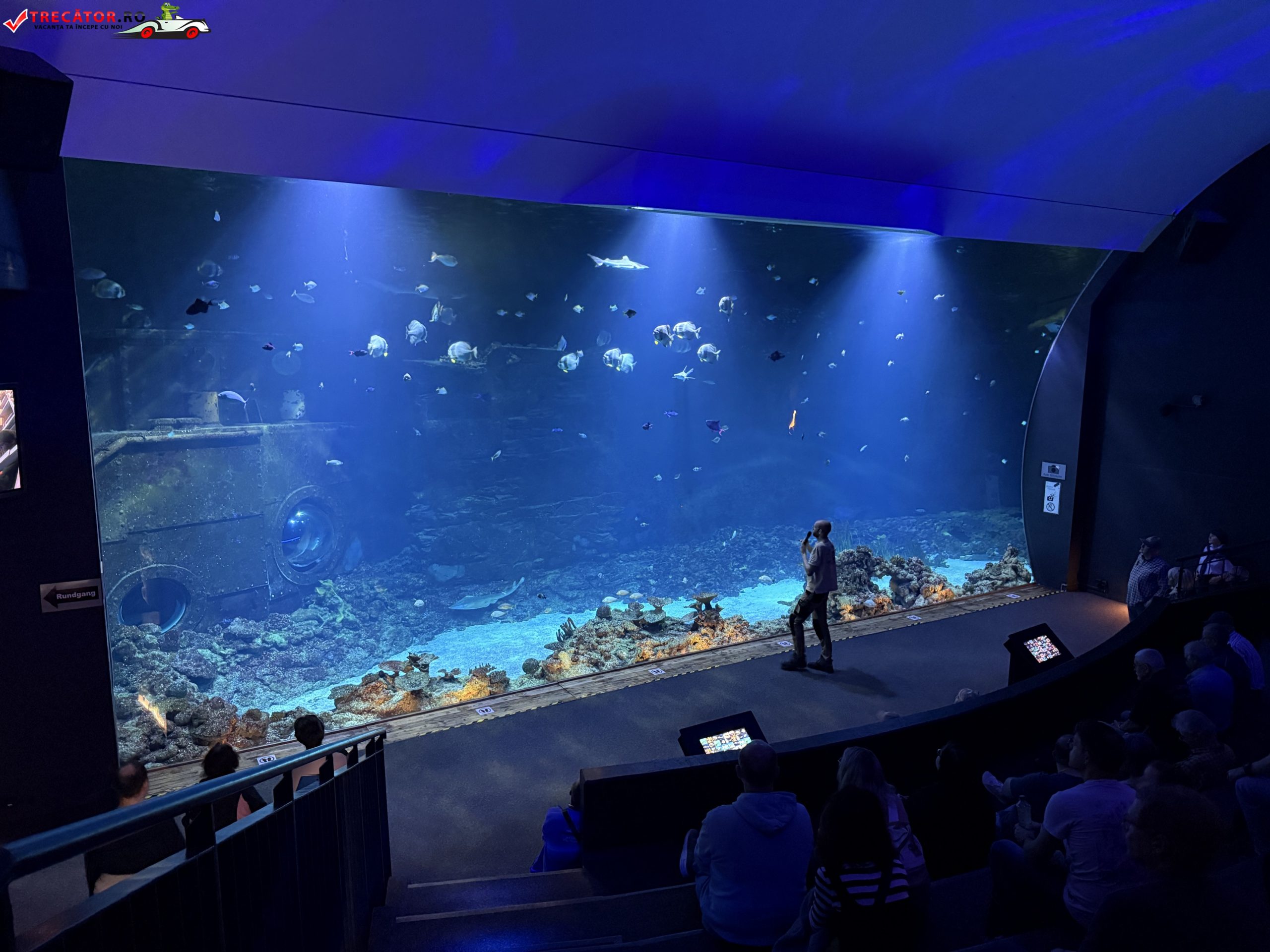 Totuși, adevărata bijuterie a Tropen-Aquarium rămâne „Große Hai-Atoll”, un bazin uriaș ce adăpostește rechini, pisici de mare și nenumărate specii de pești. Priveliștea este absolut impresionantă: vizitatorii stau în fața unei ferestre panoramice de 14 metri lățime și 6 metri înălțime, una dintre cele mai mari construcții de acest tip din Europa. Să vezi cum rechinii înoată elegant la doar câțiva centimetri distanță este o experiență pe care puține locuri o pot oferi.