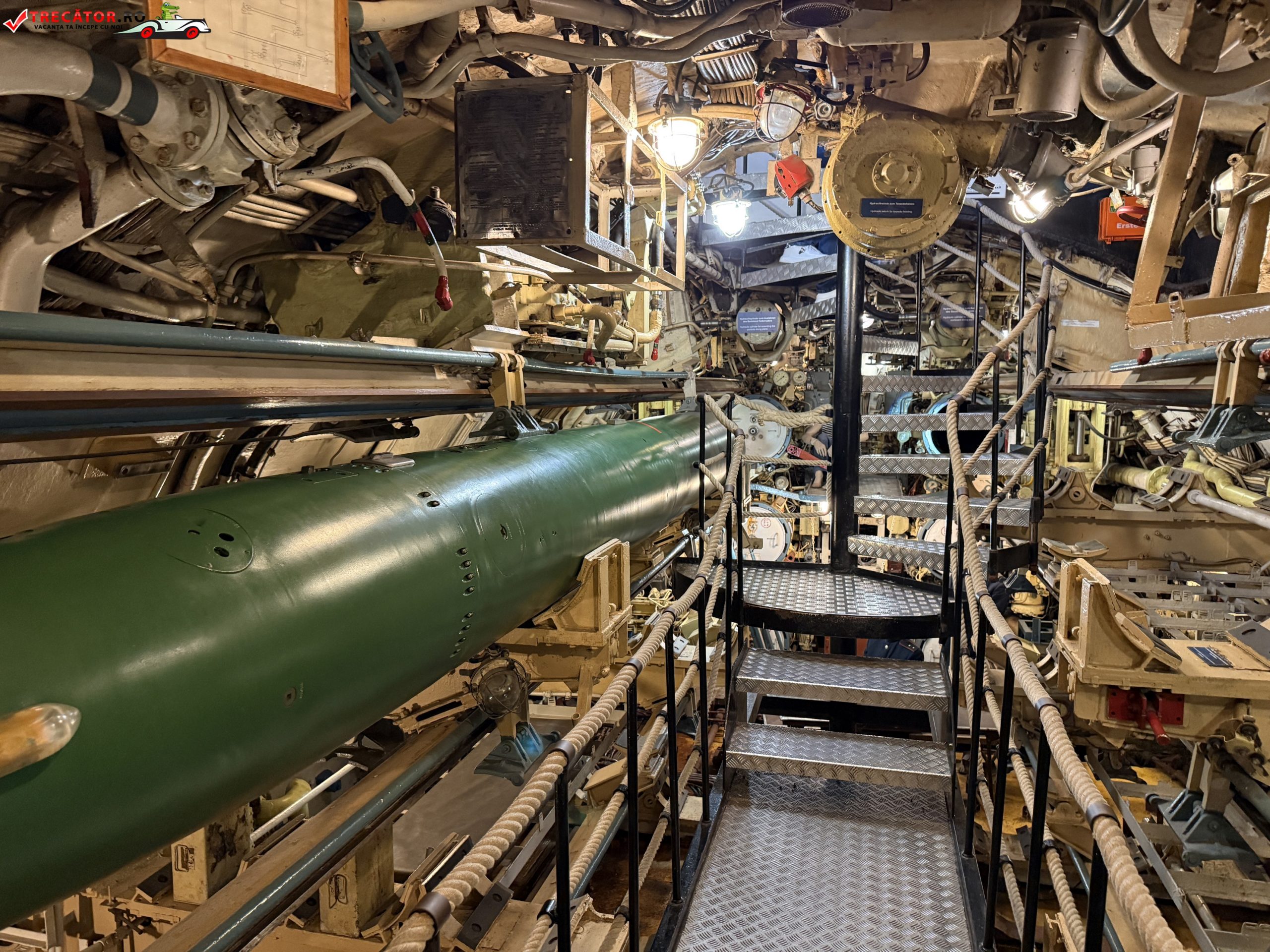 Vizitatorii au acces la diverse compartimente originale: sala torpiloarelor, camerele echipajului, sala ofițerilor, podul de comandă, motorinăria. Atmosfera este una de confinement, cu spații înguste, coridoare joase și accente tehnice autentice — ceea ce oferă o imagine puternică a vieții sub apă, în condiții aspre.