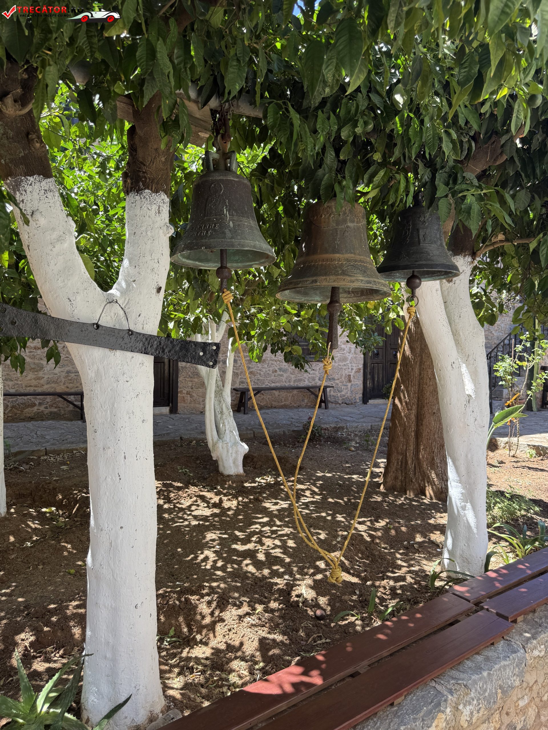 Povestea mănăstirii e la fel de captivantă. Două curţi – una exterioară, cu moară de vin, hambare şi grajduri, şi una interioară, cu chilioane pentru călugări, rezervoare de apă, bucătărie, brutărie, atelier de metal – compun un sfert de oraş în propria-i tăcere. În exterior, situate discret, sunt vechi mori de ulei, o cremerie, două rezervoare mari deschise și, remarcabil, doisprezece chiparoși seculari ce simbolizează cei doisprezece Apostoli.