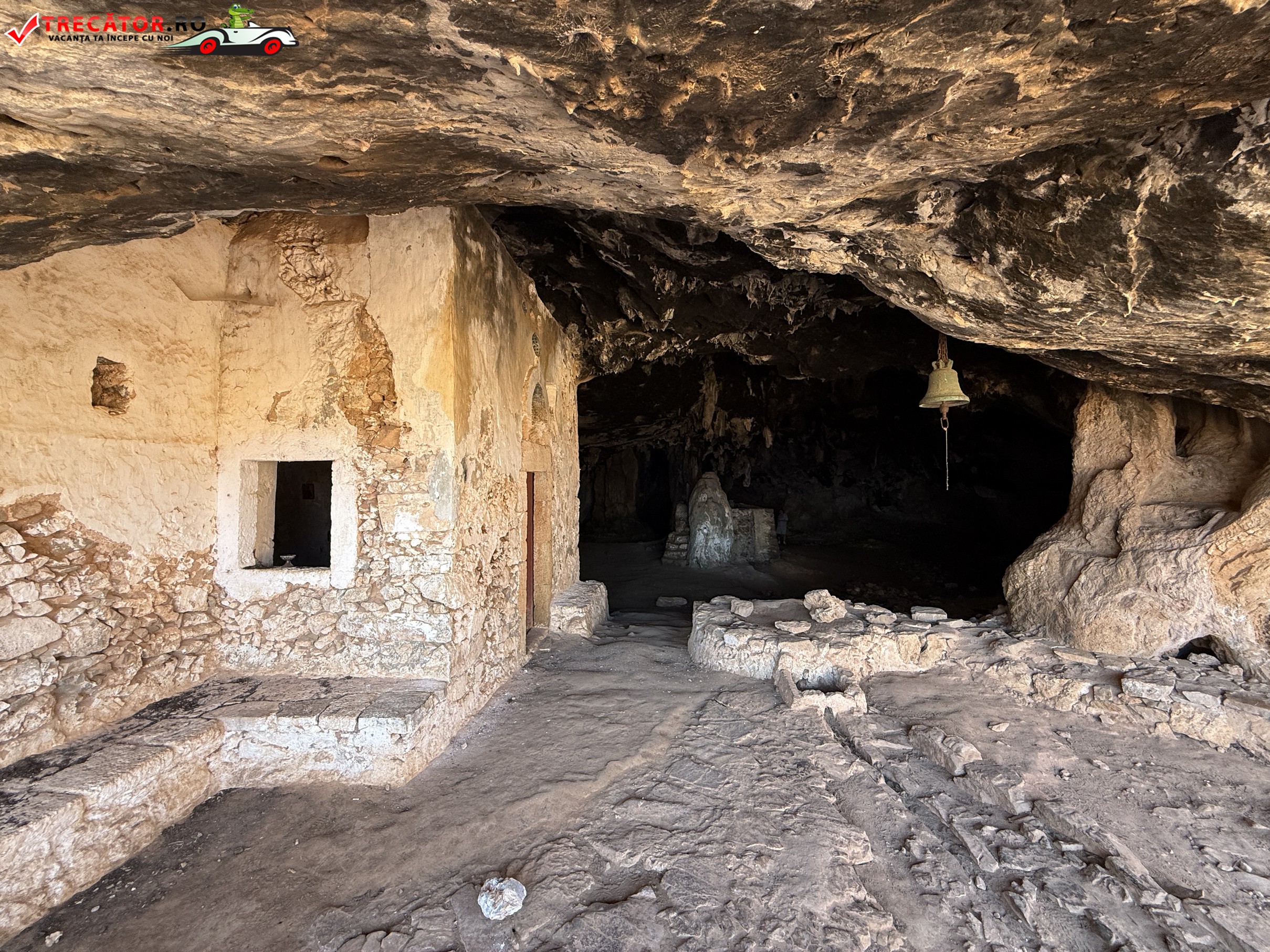 Drumul spre peșteră oferă priveliști spectaculoase ale defileului Avlaki și trece pe lângă mănăstirea abandonată Sfântul Antonie. Dacă decizi să continui traseul, după peșteră urmează Mănăstirea Katholiko – probabil cel mai vechi lăcaș monahal din Creta, construit în secolul V-VI și în mare parte săpat în stâncă. La capătul acestui traseu, vei ajunge la golful Katholiko – o mică insulă protejată de vânt, ideală pentru o scurtă oprire la mare; nu uita costumul de baie și prosopul.