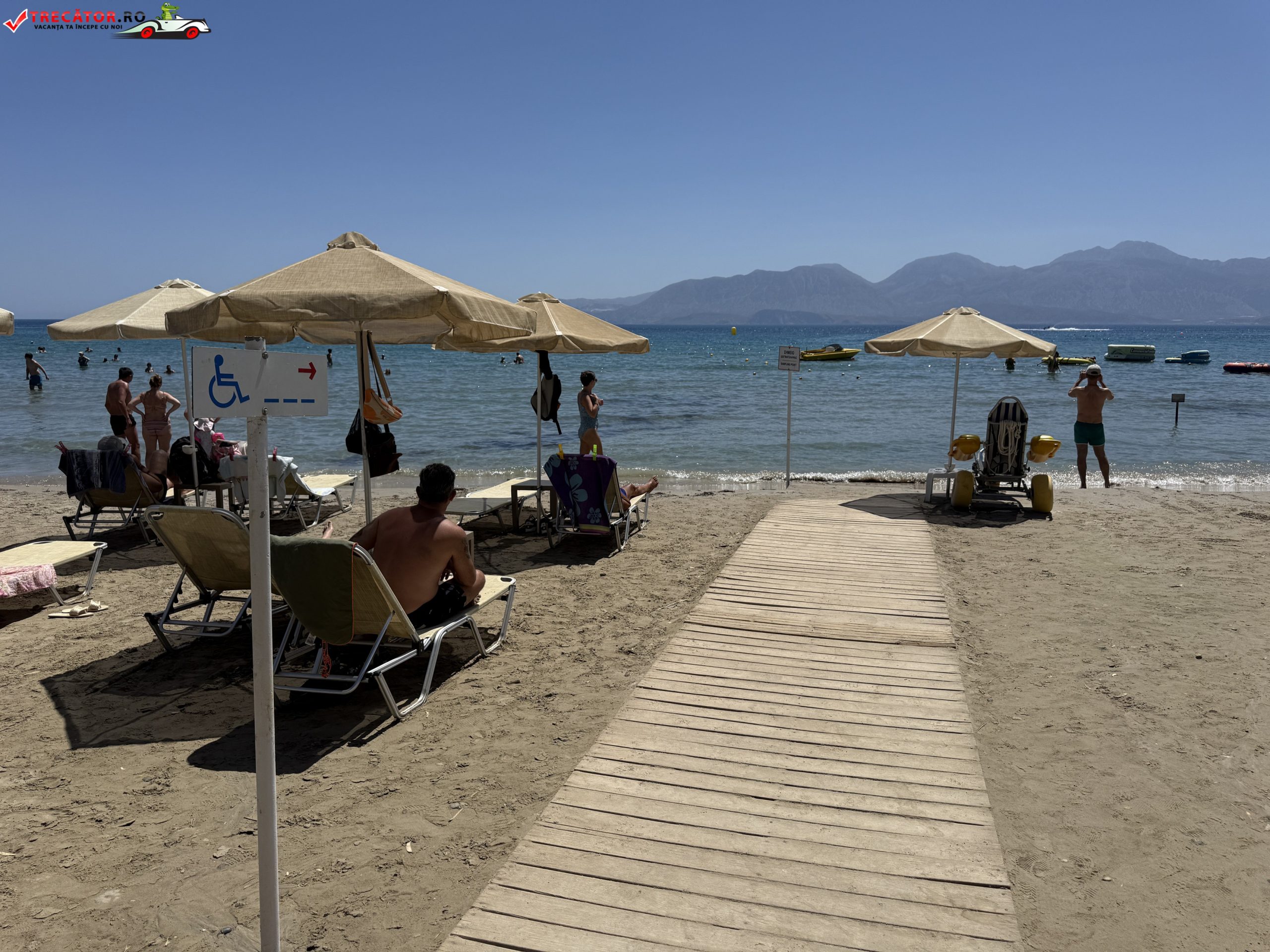 Un alt avantaj al Plajei Almyros este accesibilitatea. Dacă stai în Agios Nikolaos, o scurtă plimbare de cinci minute de-a lungul unui drum pietonal te aduce direct pe plajă. Pentru cei care vin din alte zone, există parcare generoasă în apropiere, iar autobuzele locale opresc aproape de intrare. Taxiurile sunt și ele o opțiune comodă, mai ales pentru familii sau grupuri.