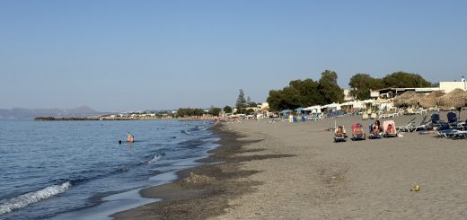 În jurul plajei, priveliștea către munții Thrypti completează tabloul. Diminețile sunt liniștite, cu lumina soarelui jucându-se pe creste, iar serile aduc apusuri spectaculoase, când cerul se colorează în nuanțe de roz și portocaliu. Dacă vrei o experiență mai aparte, o plimbare la apus de-a lungul țărmului rămâne cu siguranță în memorie.