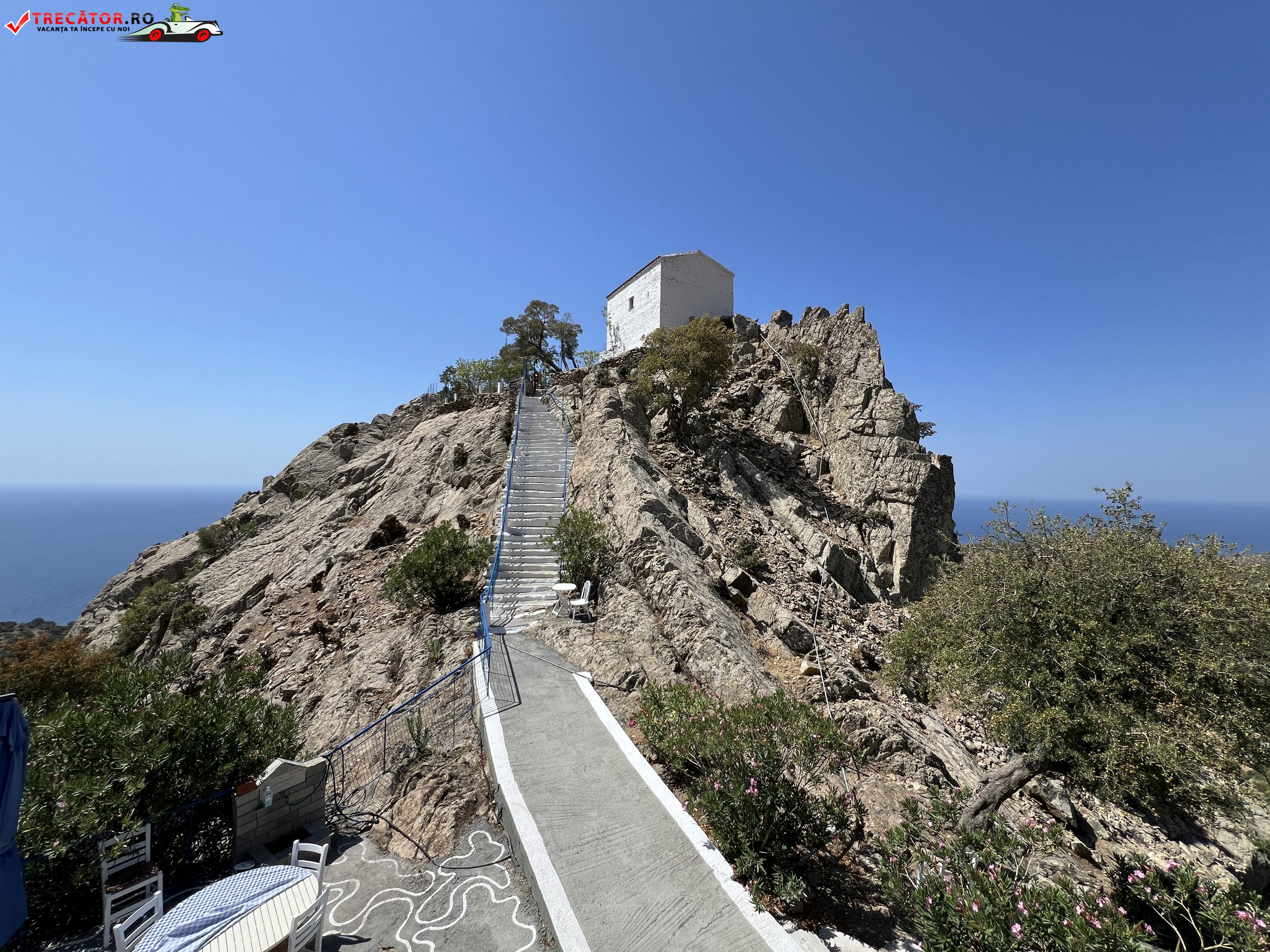 Dacă te îndrepți de la portul Kamariotissa spre sud, înainte de a ajunge la plaja Pachia Ammos, vei observa bisericuța pe o stâncă înaltă. O săgeată de pe drum indică direcția. Drumul care duce la capelă este construit pe coasta muntelui și, deși nu este în cea mai bună stare, oferă o experiență deosebită, cu peisaje impresionante de-a lungul versanților stâncoși.