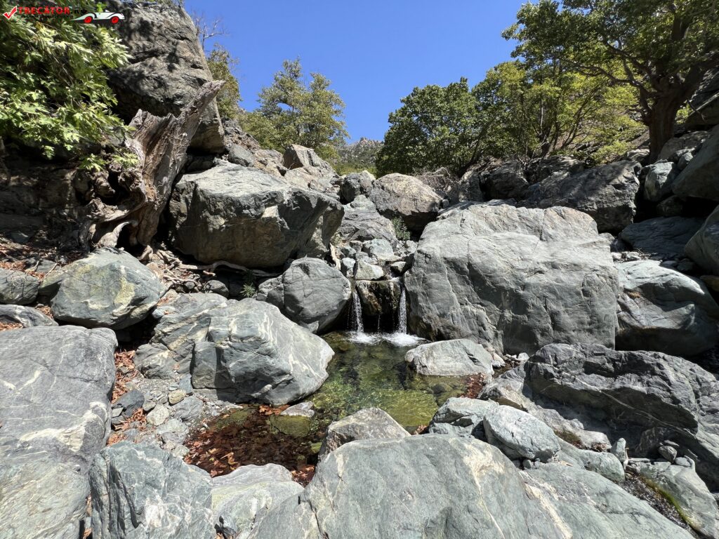 Drumeția către Vathres Xiropotamos nu este una foarte ușoară, însă efortul merită, datorită peisajului sălbatic și a apei cristaline care curge printre cascade mici și bazine succesive. Aceste vathres sunt înconjurate de vegetație densă și oferă o atmosferă de liniște, departe de aglomerația turistică.