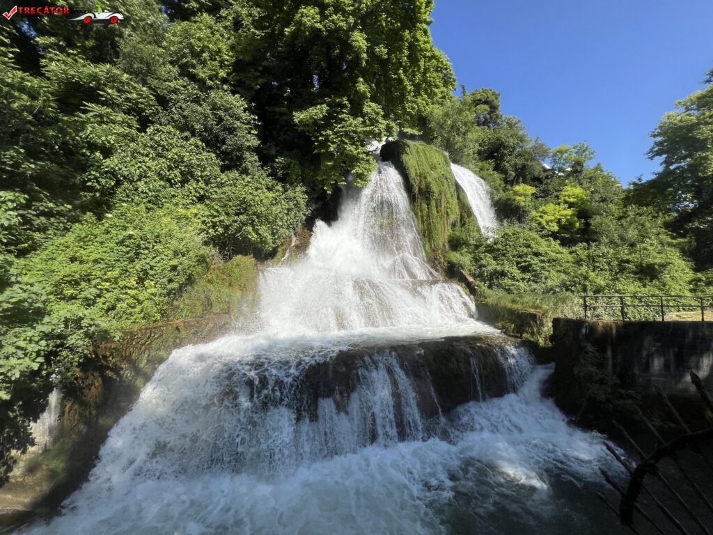 Până la căderea în gol, apa este dirijată printr-o grădină încărcată de flori şi arbuşti, se strecoară pe sub podeţe, se odihneşte la adăpostului unui bazin, de mici dimensiuni, şi formează minicascade.