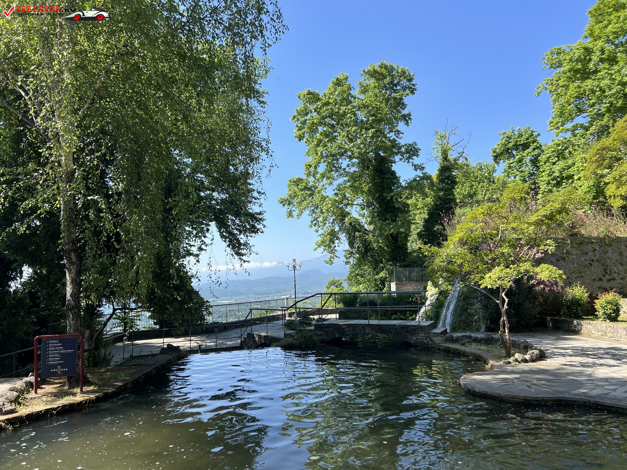 Până la căderea în gol, apa este dirijată printr-o grădină încărcată de flori şi arbuşti, se strecoară pe sub podeţe, se odihneşte la adăpostului unui bazin, de mici dimensiuni, şi formează minicascade.