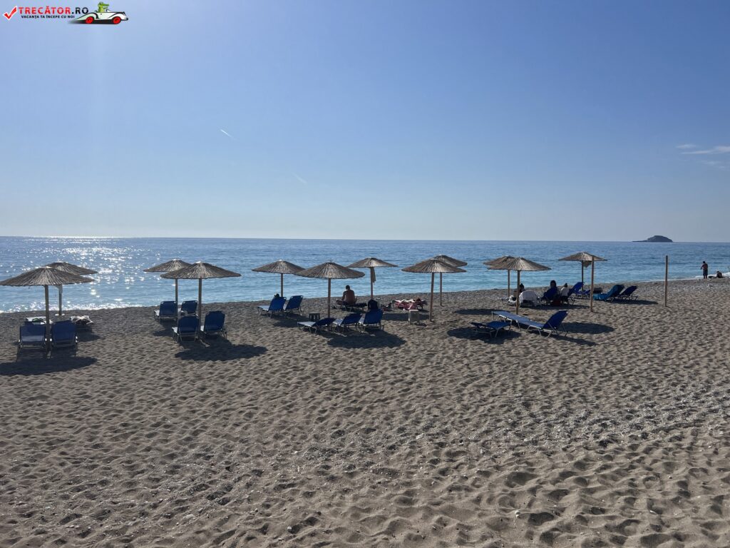 Această plajă mai puțin cunoscută și mai puțin aglomerată oferă o atmosferă mai intimă și liniștită. Vizitatorii pot găsi câteva umbrele și zone naturale pentru a se așeza și a se bucura de soare și de apele cristaline. În apropiere, există și o tavernă care servește mâncăruri tradiționale grecești, unde vizitatorii pot savura preparate locale delicioase.