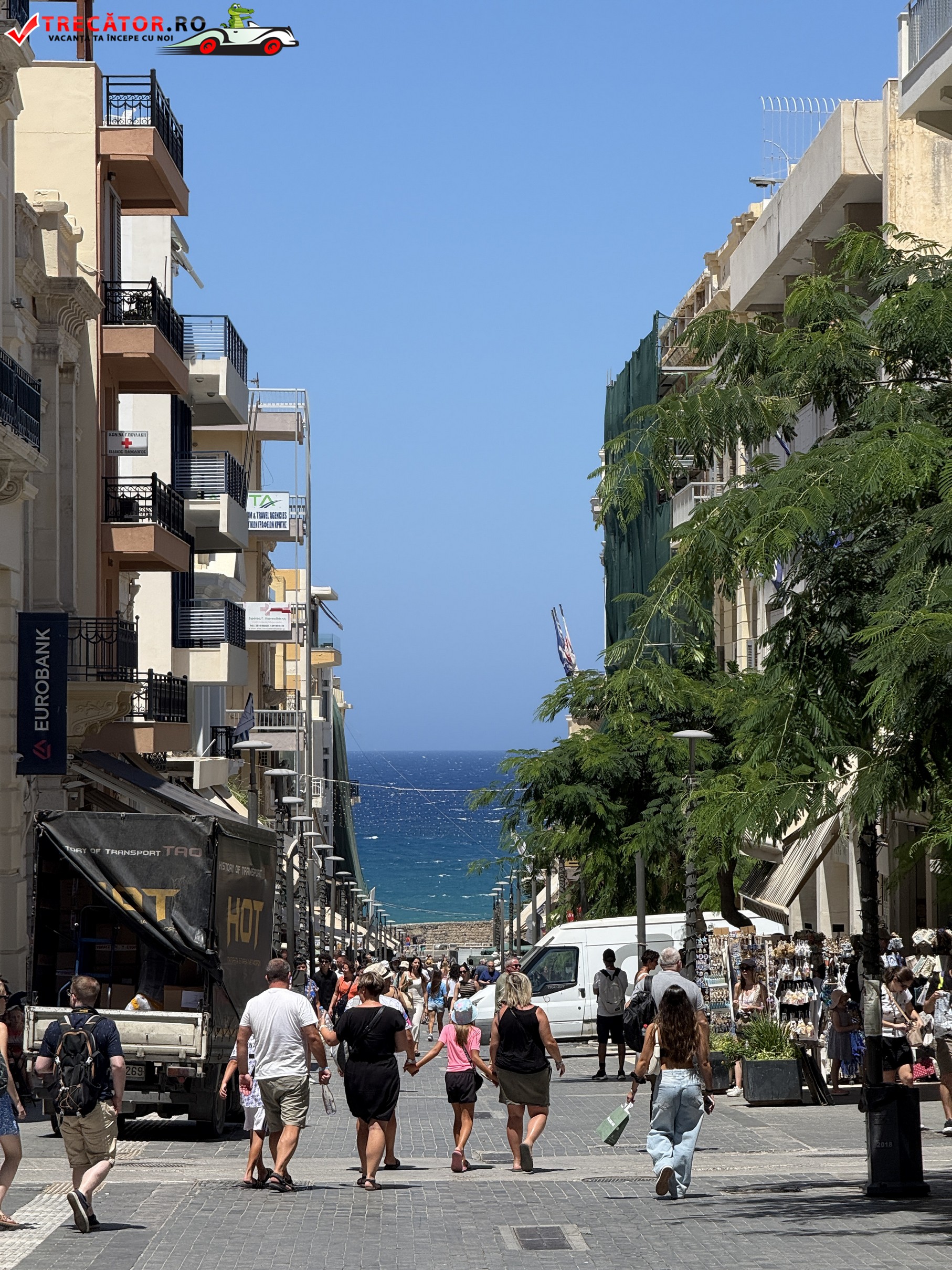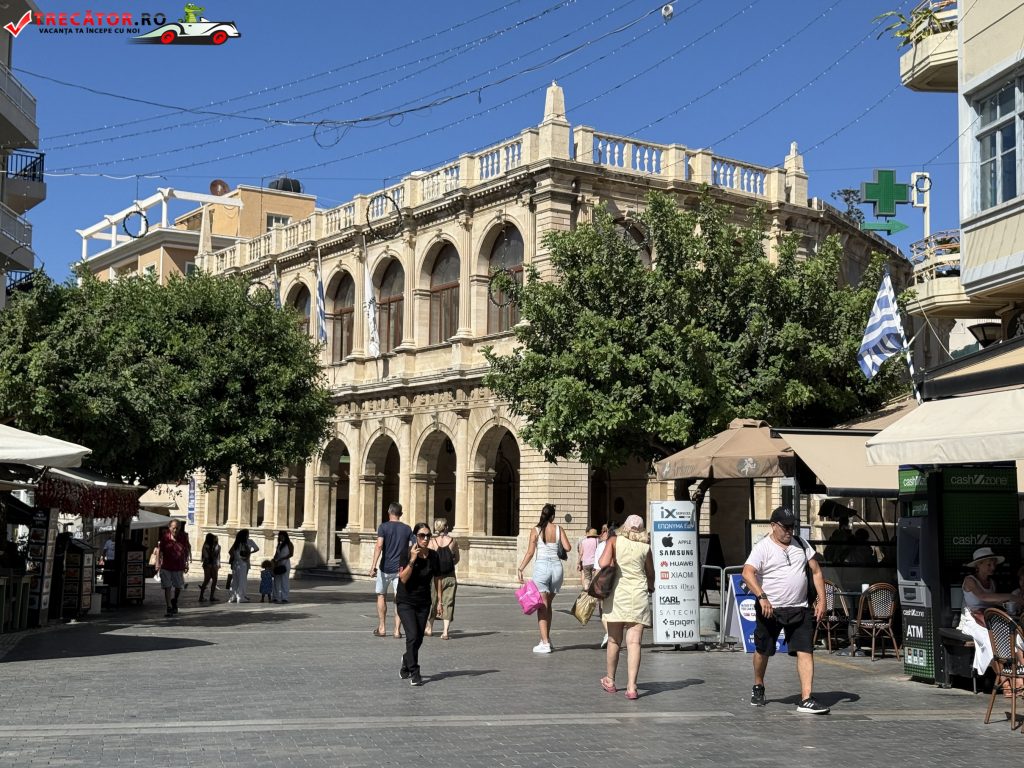 Centrul istoric al Heraklionului este plin de viață. Piața Morosini, cu fântâna venețiană cu lei, este un punct de întâlnire pentru localnici și turiști. De jur împrejur găsești cafenele tradiționale, taverne unde poți gusta preparate cretane și magazine cu produse locale – ulei de măsline, vinuri, miere sau ierburi aromatice.