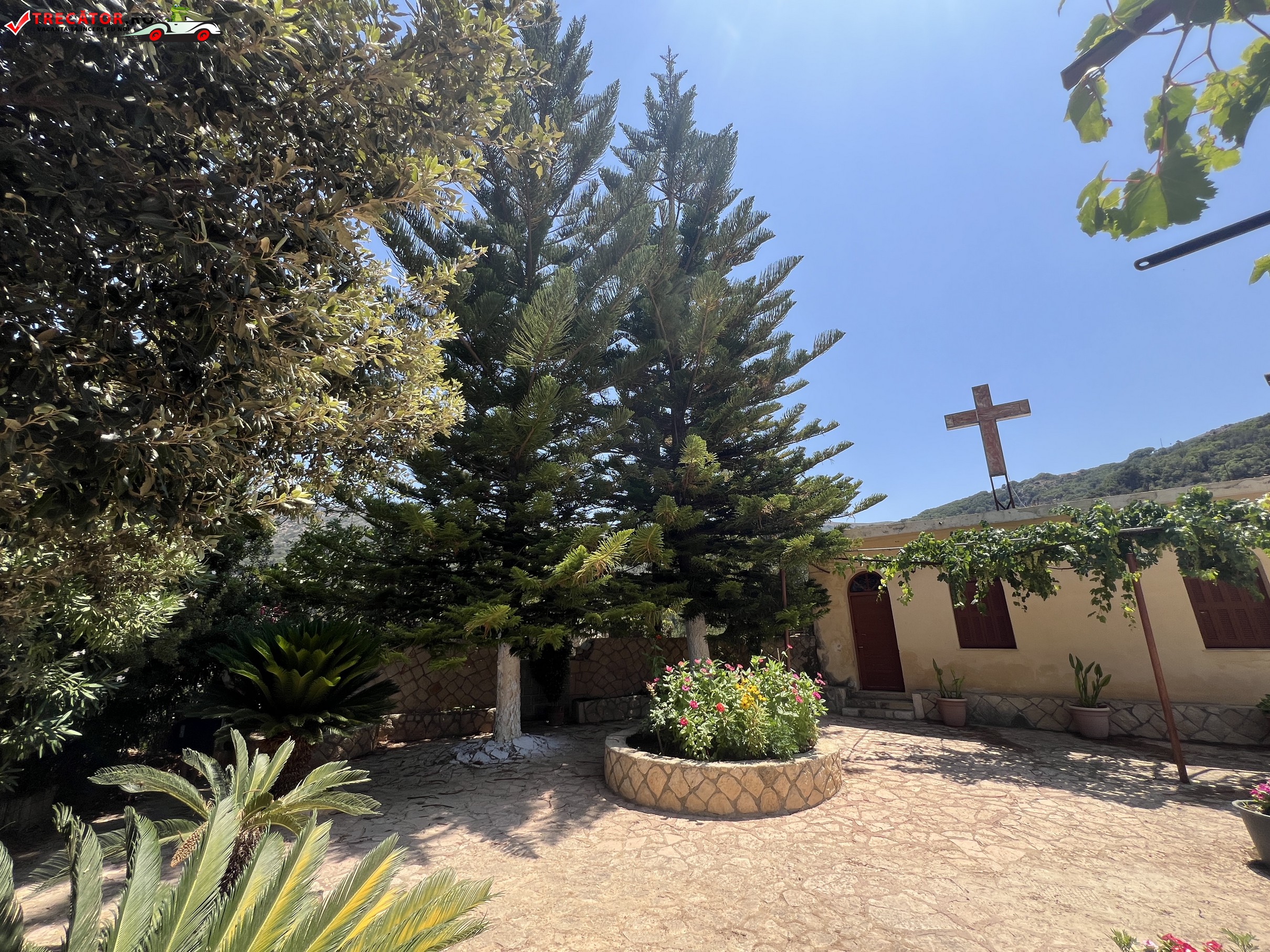 Înconjurul natural al mănăstirii este verde luxuriant și cuprinde pini și brazi. Din curte, vizitatorii se pot bucura de un apus minunat al Mării Ionice.
