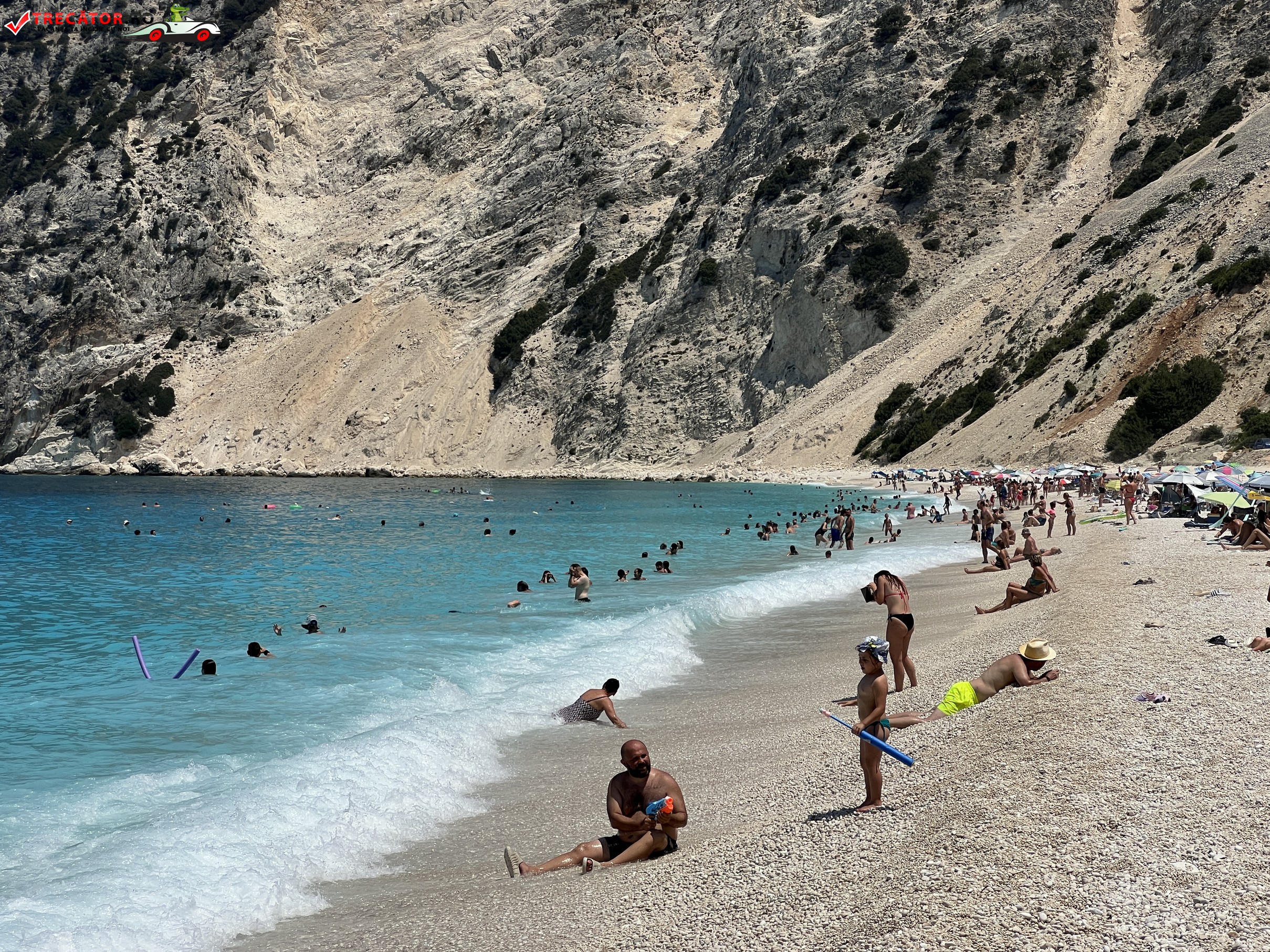 Plaja Myrtos cu apele sale albastre scaldate de soare si inconjurate de munti impaduriti, iti ofera ingredientele perfecte pentru o vacanta pe plaja, departe de statiunile aglomerate.