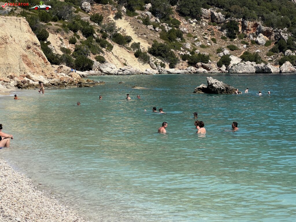 Este formată din două plaje legate între ele, înconjurată de pietre uriaşe şi dispune de o tavernă, unde se pot servi diferite băuturi. În schimb marea turcoaz, contrastează cu nisipul alb oferind imagini de vis.