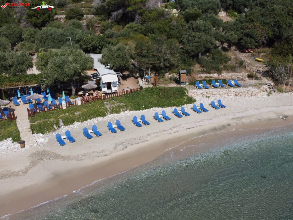 Este o plajă relativ mică la câteva minute de mers pe jos de la plaja Aliki. Nisipul fin și intrarea lină în apă fac din această zonă o destinație ideală pentru familii și pentru cei care caută confort. În lunile de vară, în special în iulie și august, plaja poate deveni aglomerată, așa că este recomandat să ajungeți devreme pentru a asigura un loc.